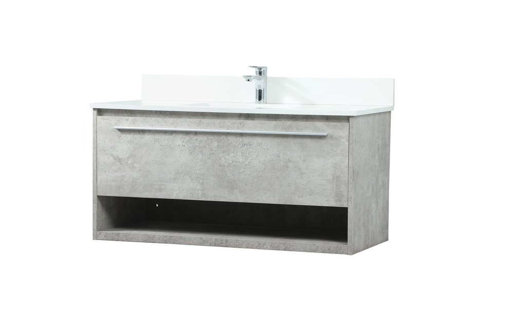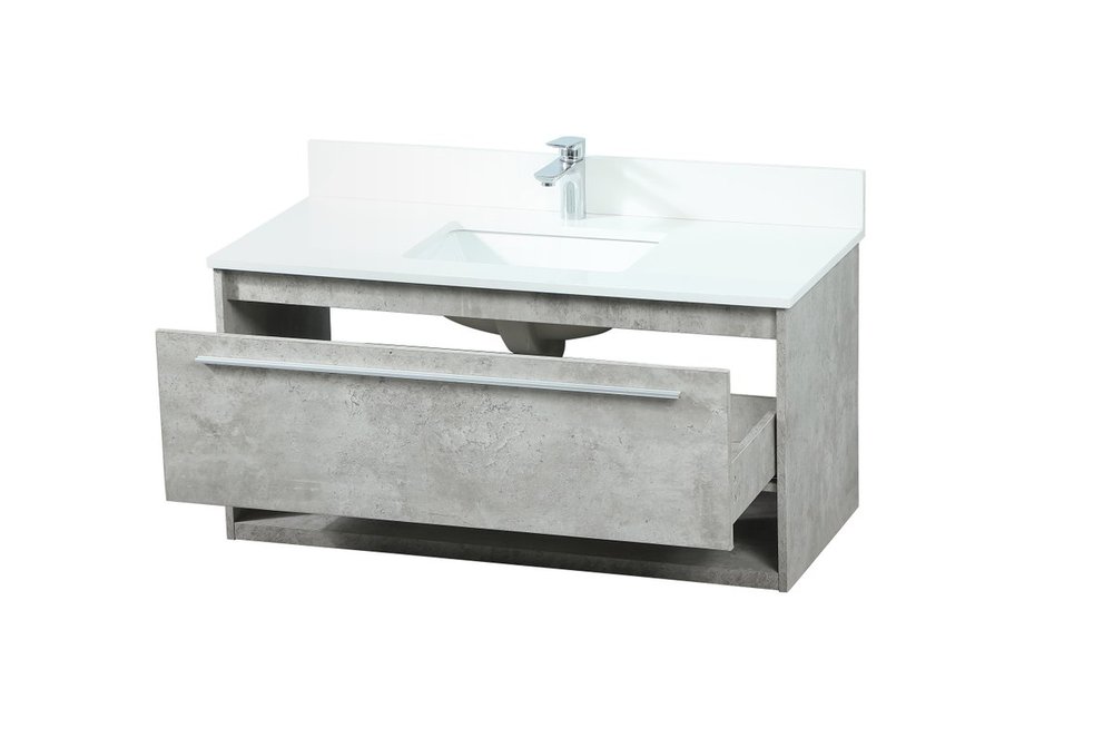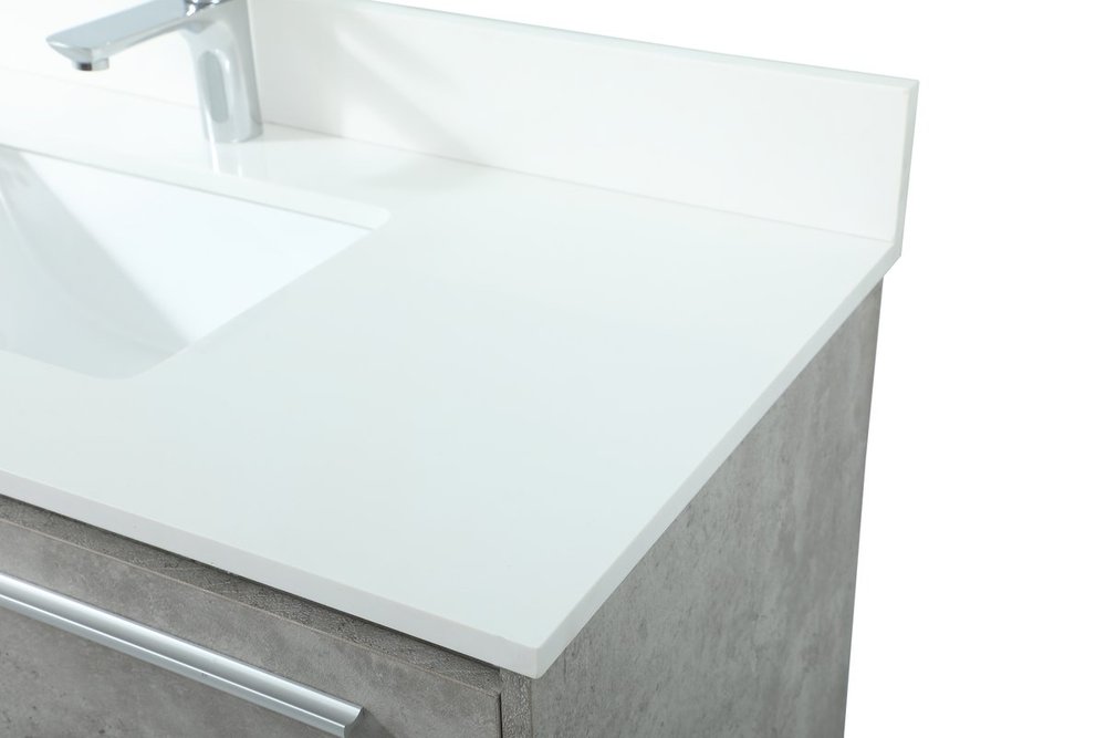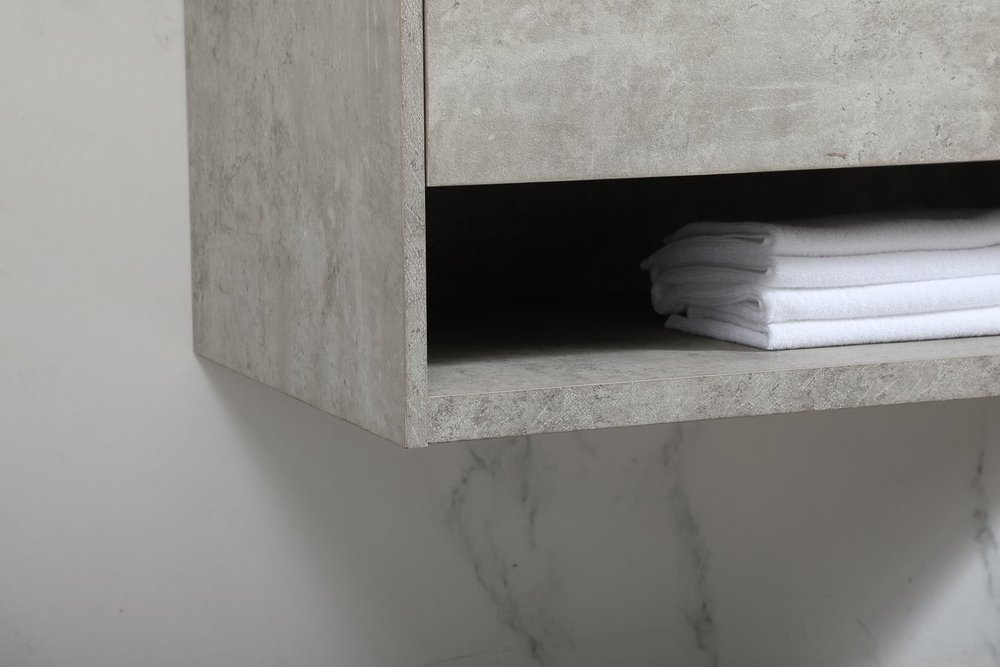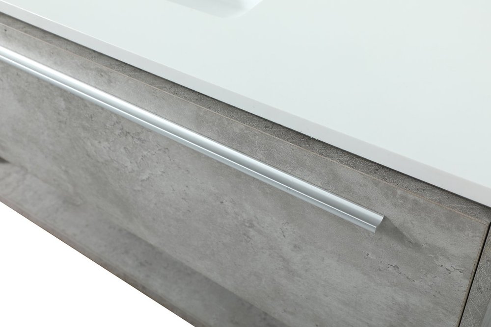 Save space and make your bathroom appear bigger with this floating vanity. Its minimal design will have you in awe, while its clean lines will leave your room feeling fresh and uncluttered. The Single u-drawer pulls out for storage while the open space below allows you to place extra towels or various other essentials. The ivory white engineered marble counter top with porcelain sink adds refined luxe while the aluminum barpull style handle adorn the vanity face. Comes with a matching backsplash to protect your walls.