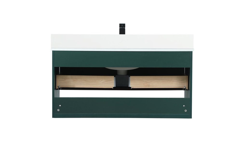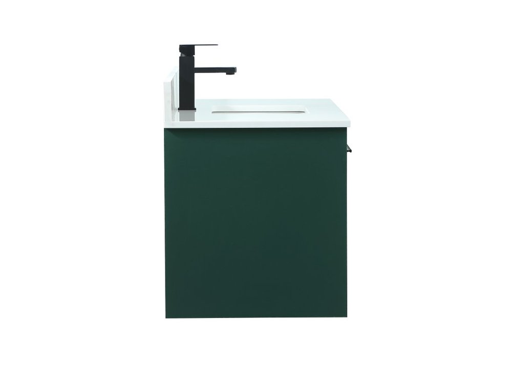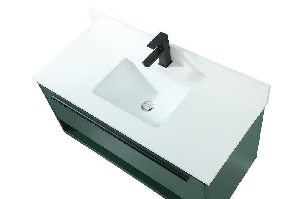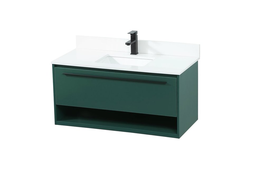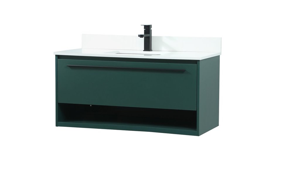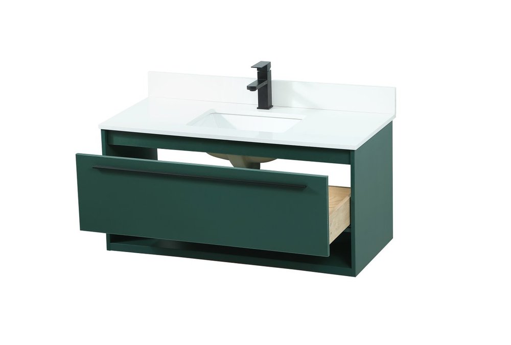 Save space and make your bathroom appear bigger with this floating vanity. Its minimal design will have you in awe, while its clean lines will leave your room feeling fresh and uncluttered. The Single u-drawer pulls out for storage while the open space below allows you to place extra towels or various other essentials. The ivory white engineered marble counter top with porcelain sink adds refined luxe while the aluminum barpull style handle adorn the vanity face. Comes with a matching backsplash to protect your walls.