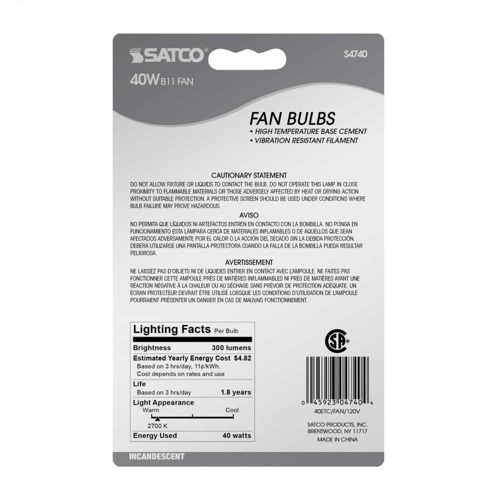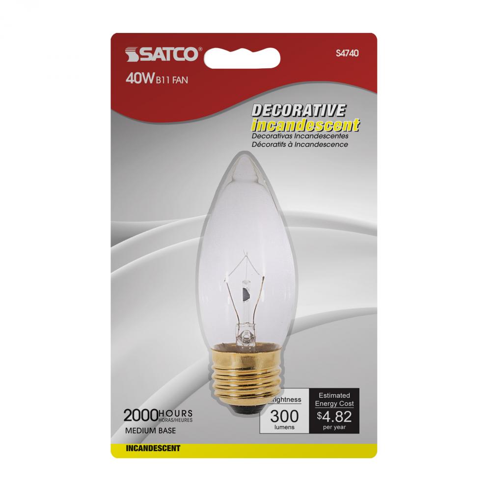 40 Watt B10 Incandescent; Clear; 2000 Average rated hours; 300 Lumens; Medium base; 120 Volt; 2-Card