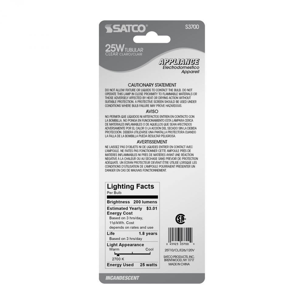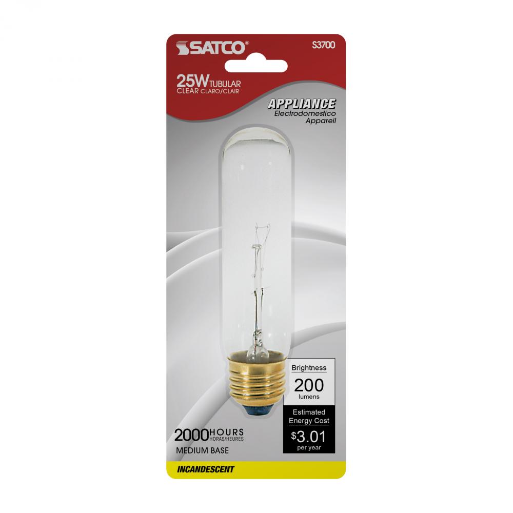 40 Watt T10 Incandescent; Clear; 2000 Average rated hours; 280 Lumens; Medium base; 120 Volt; Carded