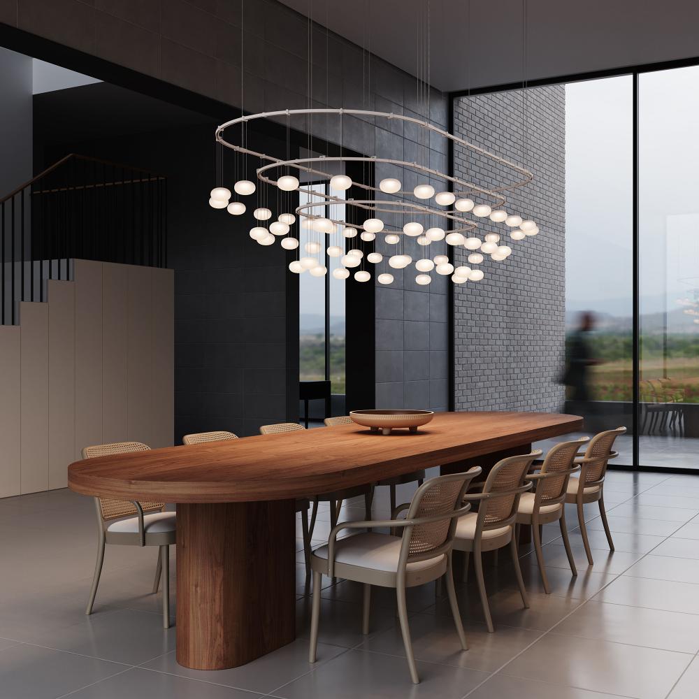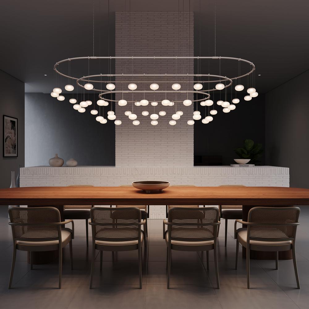 40" x 88" Path 3-Bar Racetrack w/ Height Adjustable Etched Globe Luminaires