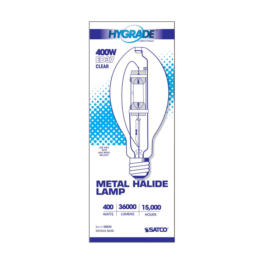 400 Watt; Metal Halide HID; Mogul base; ED37; Clear; 65 CRI; 4000K
