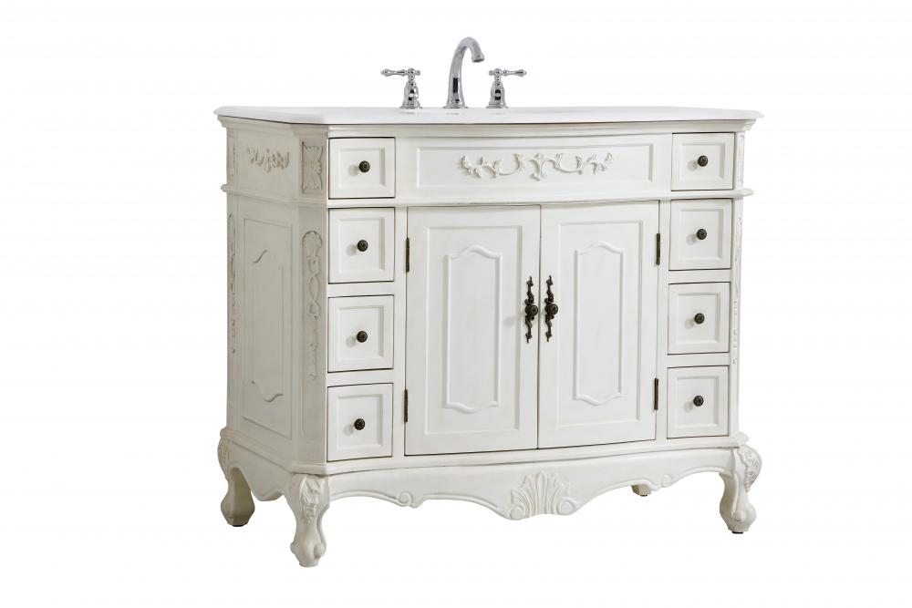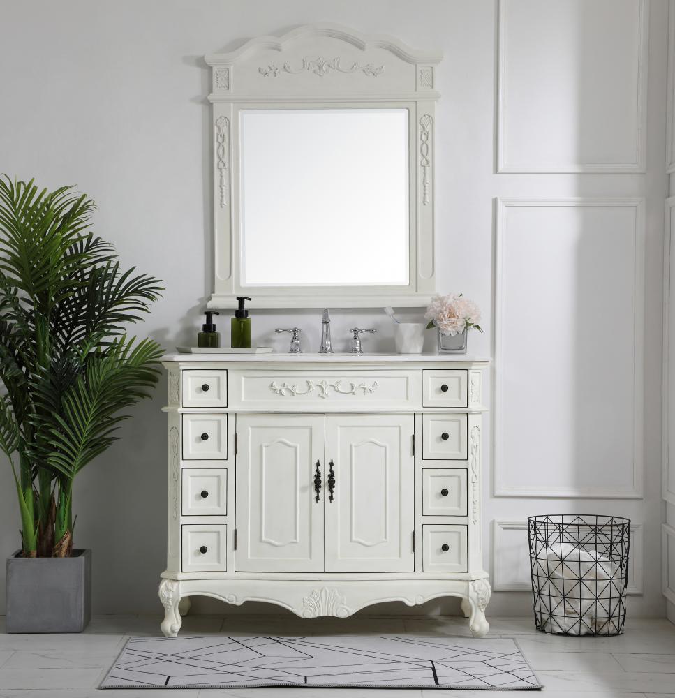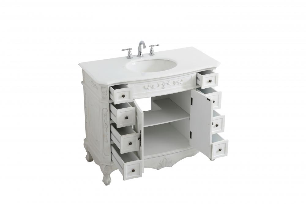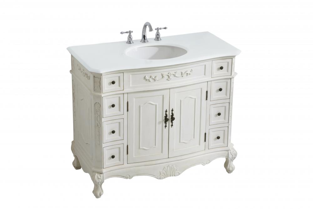 42 inch Single Bathroom vanity in Antique White with ivory white engineered marble
