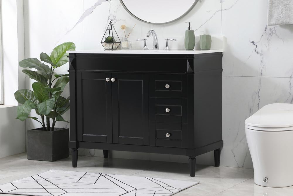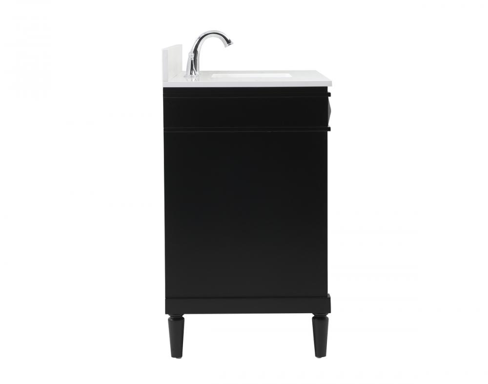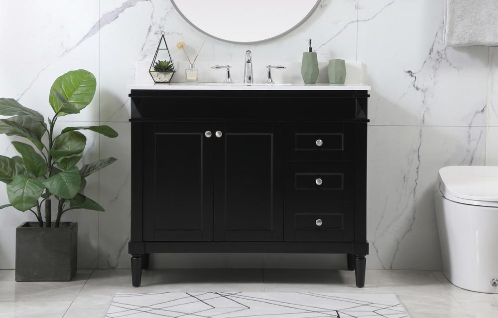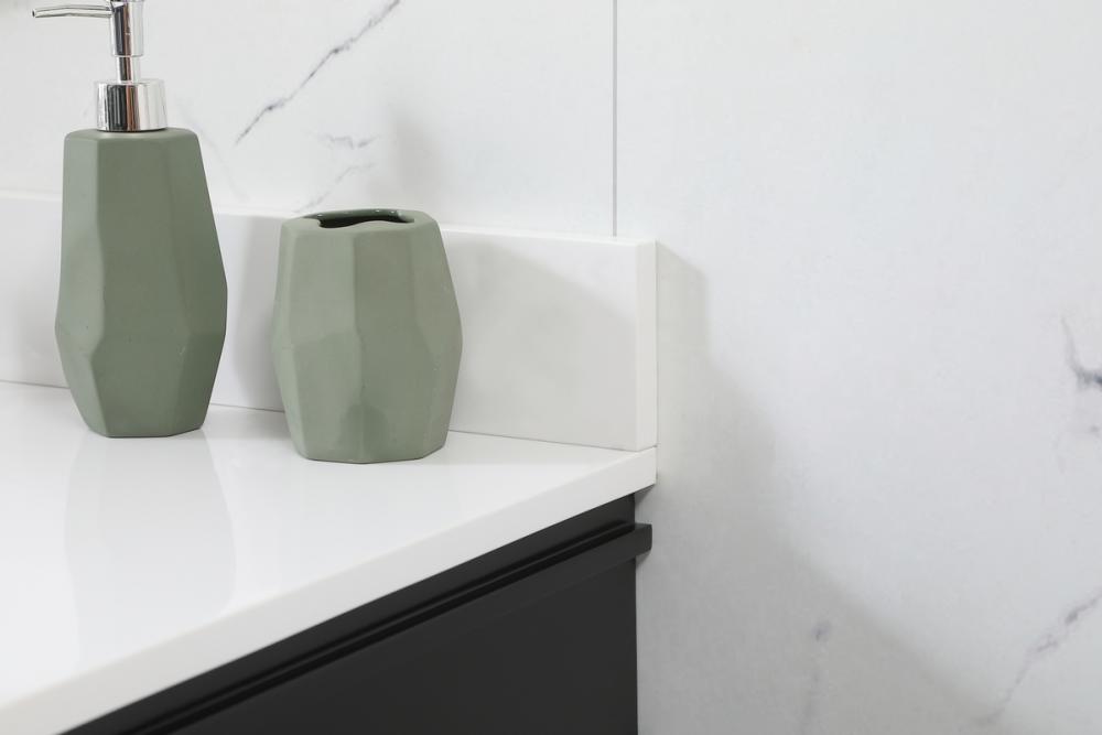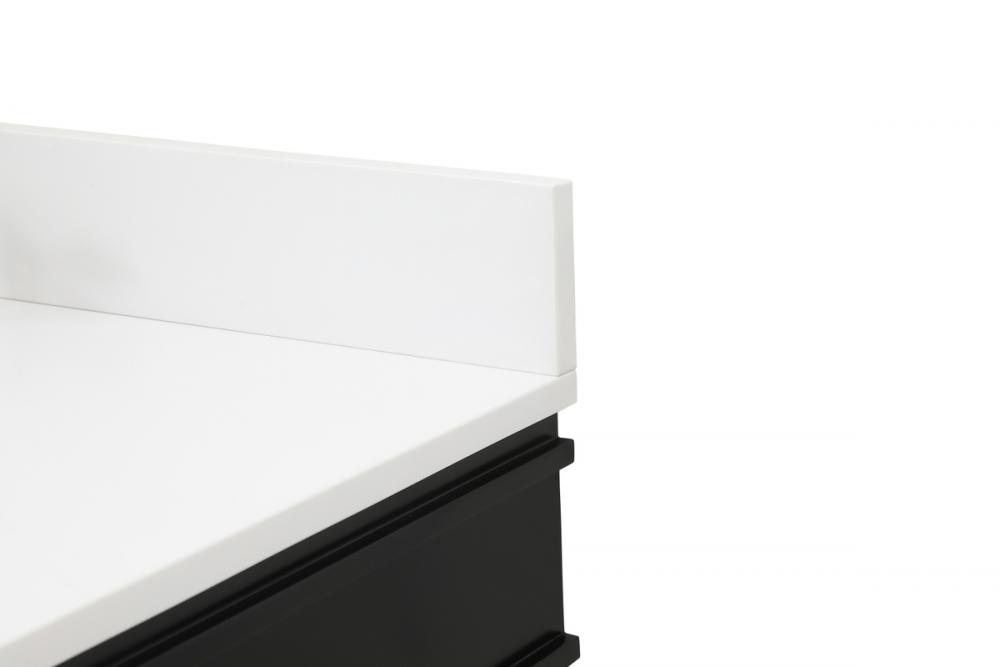 This transitional vanity is a beautiful piece of bathroom furniture will look amazing in your design scheme. The cabinet features a shaker style smooth door panel with simple round knobs and soft close hinges provide ample room for accessories. Packed with multiple side drawers with soft close glides for added comfort and full access to bath supplies. Convenient deep drawer stores all of your tall bath essentials. Constructed of engineered wood and solid wood legs with hand painted finish. The durable engineered marble countertop is a versatile material in an ivory white finish. Minor assembly of the legs needed to get this vanity up and running. Comes with a matching backsplash to complete the look and protects your wall.