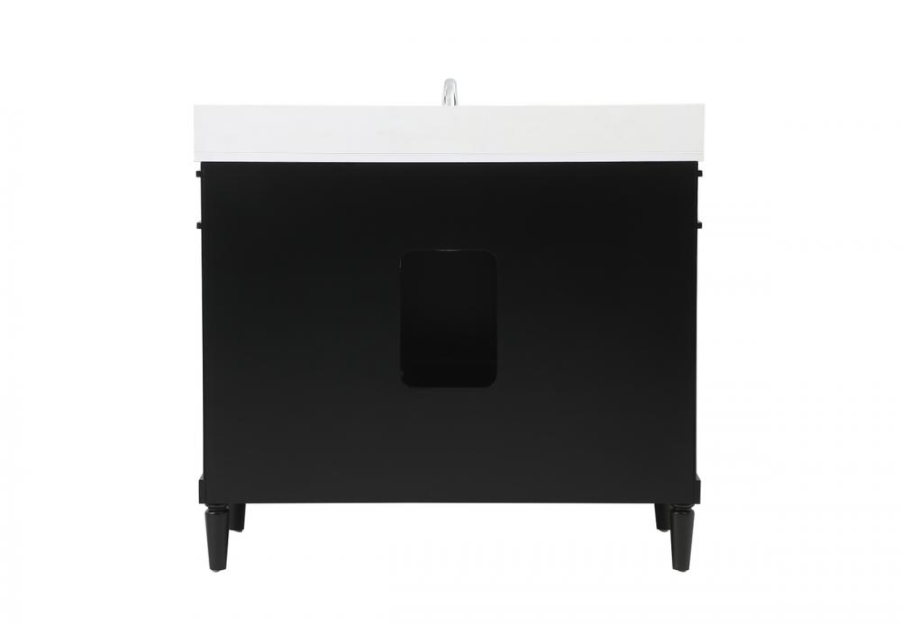 Crafted with durable engineered marble top in ivory white finish and vanity base is hand painted