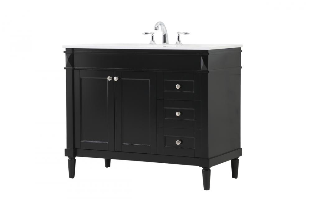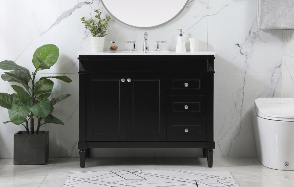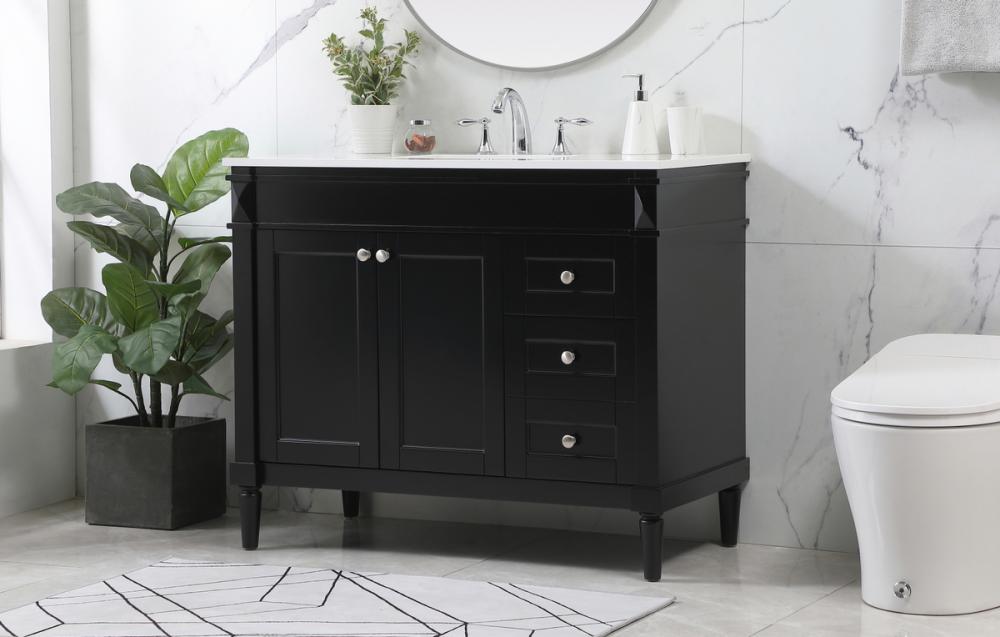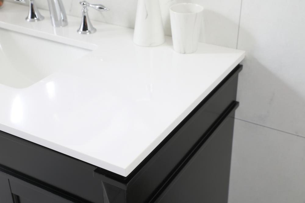 This transitional vanity is a beautiful piece of bathroom furniture will look amazing in your design scheme. The cabinet features a shaker style smooth door panel with simple round knobs and soft close hinges provide ample room for accessories. Packed with multiple side drawers with soft close glides for added comfort and full access to bath supplies. Convenient deep drawer stores all of your tall bath essentials. Constructed of engineered wood and solid wood legs with hand painted finish. The durable engineered marble countertop is a versatile material in an ivory white finish. Minor assembly of the legs needed to get this vanity up and running.