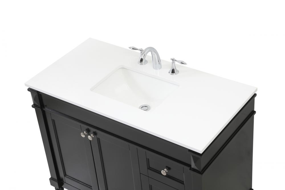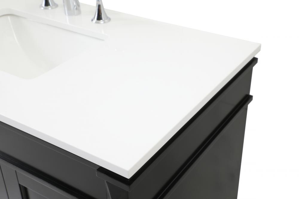 Crafted with durable engineered marble top in ivory white finish and vanity base is hand painted