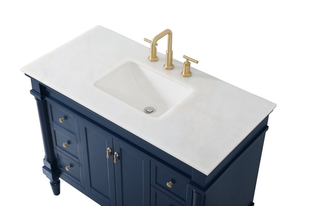 Its traditional modernity adds a mature beauty that will elevate any bathroom or powder room. Beautifully combining a natural marble countertop with white porcelain under mount sink. The cabinet allow you to store your bathroom toiletries and necessities with its soft closing features. Hand painted finish adds an elevated feature to this distinct bathroom vanity.