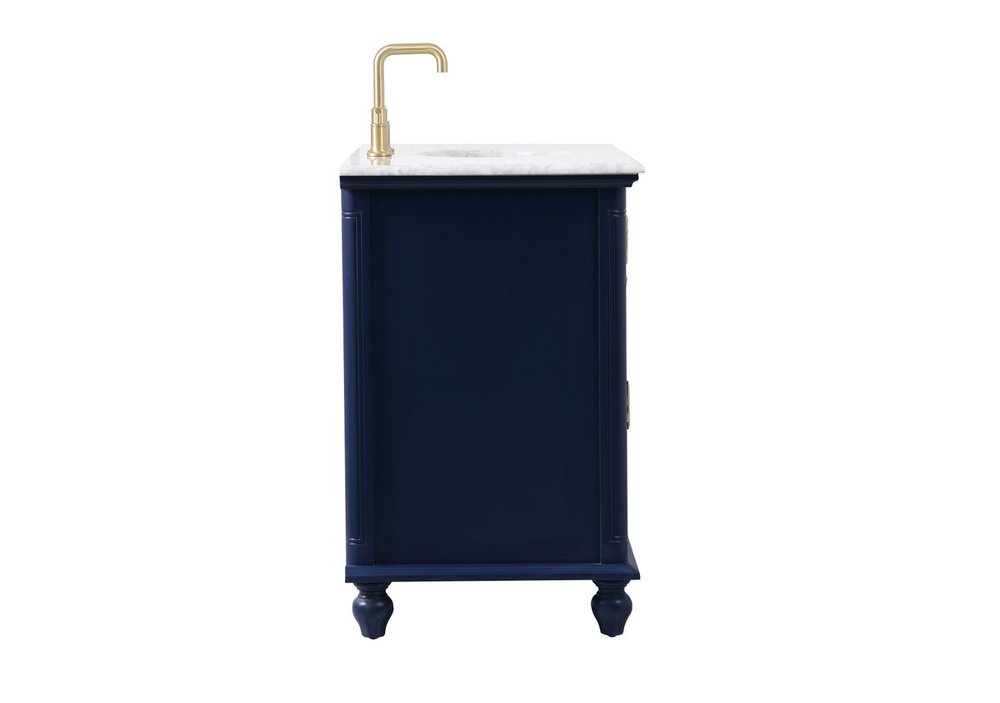 The Rhodes collection compact vanity will add lovely sophistication and complement any small bathroom or powder room, while utilizing its charm and function to provide you with ample storage spaces. Metal round knobs gently adorn the shuttered cabinet door and drawer at the base, allowing for you to store away your bathroom essentials. The Carrara white marble countertop, porcelain undermount sink, dignified subtle engravings on the side edges, and rounded legs all come together to create contemporary beauty. Work with your space, and design a beautiful room, no matter the size.
