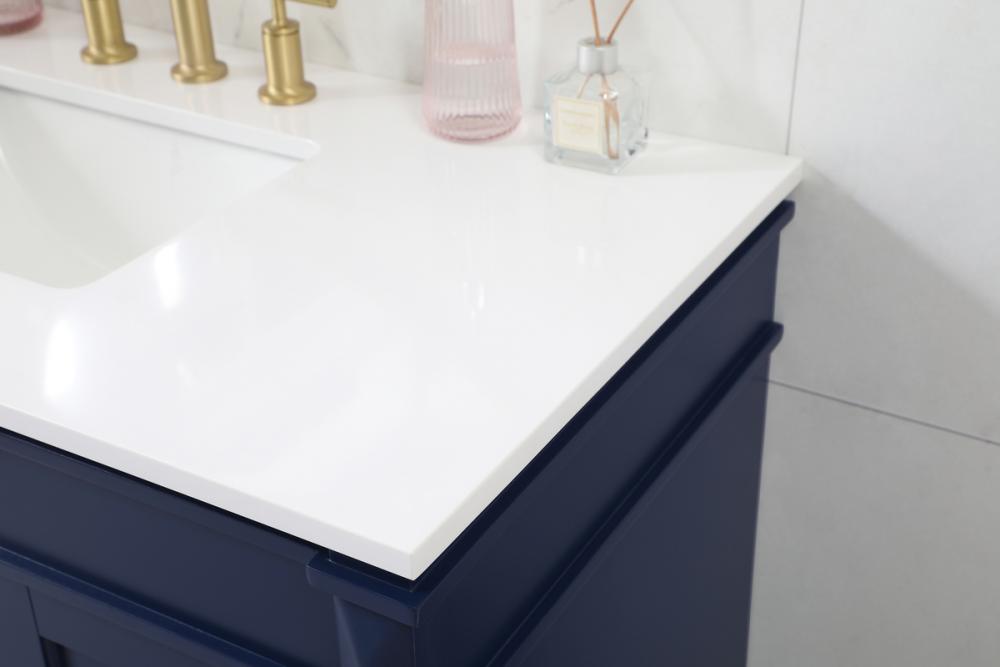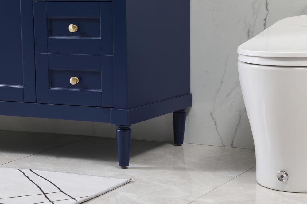This transitional vanity is a beautiful piece of bathroom furniture will look amazing in your design scheme. The cabinet features a shaker style smooth door panel with simple round knobs and soft close hinges provide ample room for accessories. Packed with multiple side drawers with soft close glides for added comfort and full access to bath supplies. Convenient deep drawer stores all of your tall bath essentials. Constructed of engineered wood and solid wood legs with hand painted finish. The durable engineered marble countertop is a versatile material in an ivory white finish. Minor assembly of the legs needed to get this vanity up and running.