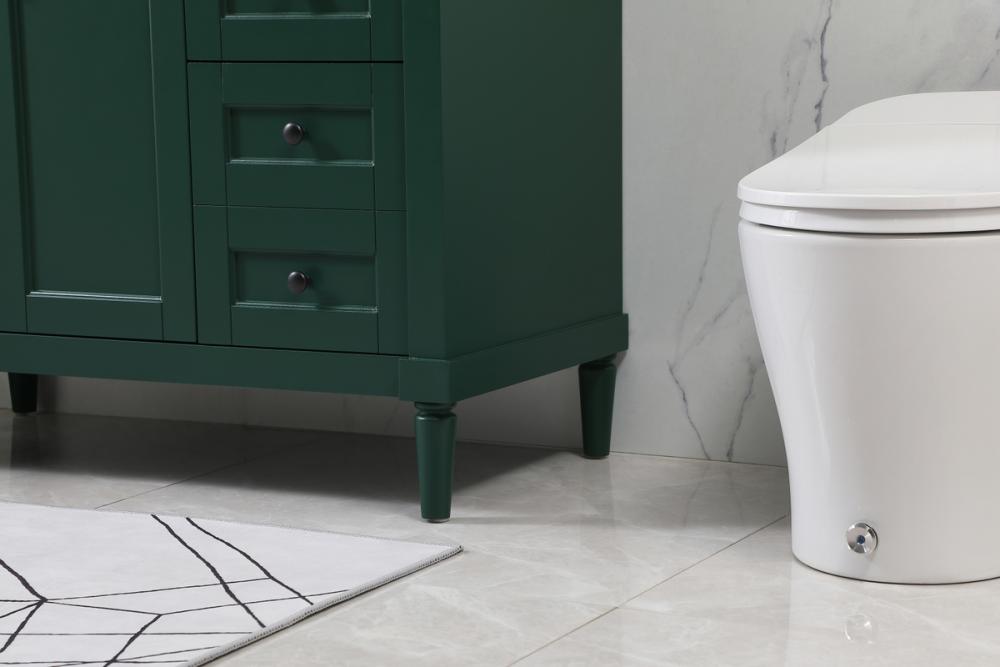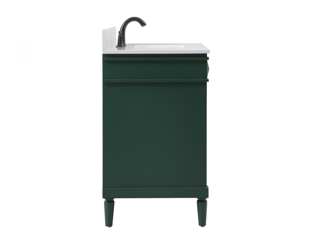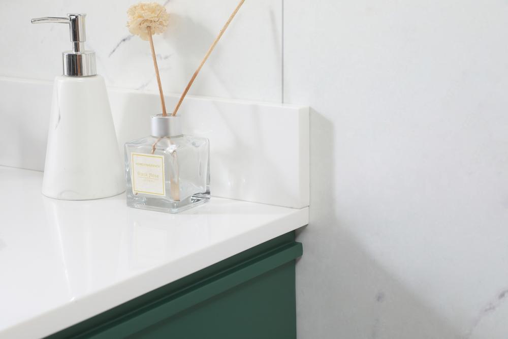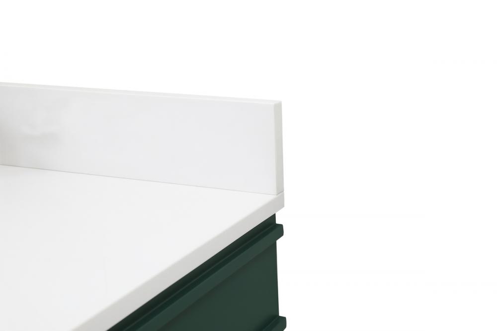 This transitional vanity is a beautiful piece of bathroom furniture will look amazing in your design scheme. The cabinet features a shaker style smooth door panel with simple round knobs and soft close hinges provide ample room for accessories. Packed with multiple side drawers with soft close glides for added comfort and full access to bath supplies. Convenient deep drawer stores all of your tall bath essentials. Constructed of engineered wood and solid wood legs with hand painted finish. The durable engineered marble countertop is a versatile material in an ivory white finish. Minor assembly of the legs needed to get this vanity up and running. Comes with a matching backsplash to complete the look and protects your wall.