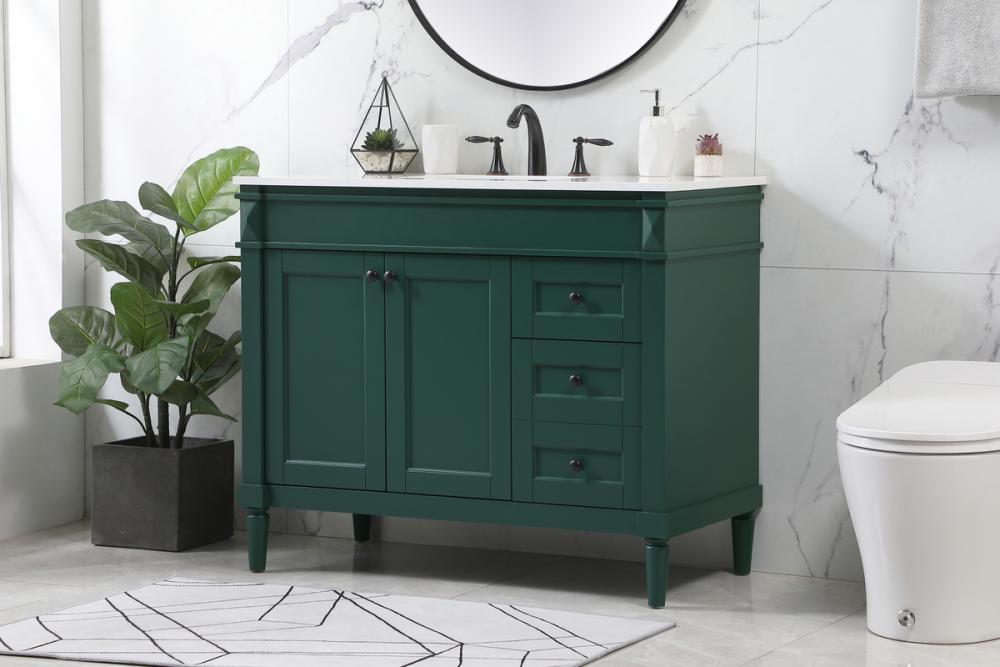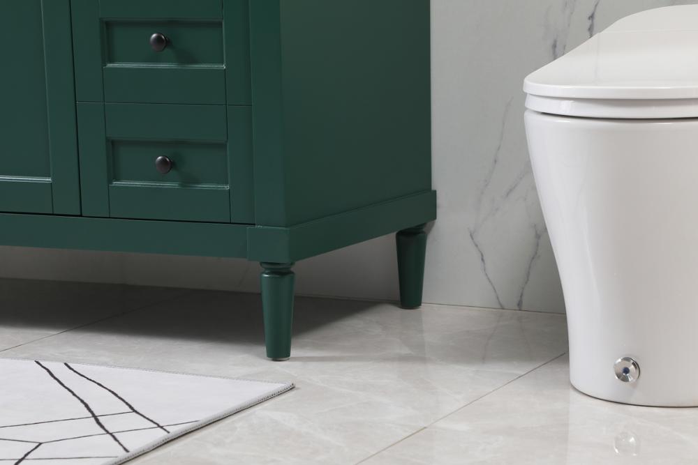 This transitional vanity is a beautiful piece of bathroom furniture will look amazing in your design scheme. The cabinet features a shaker style smooth door panel with simple round knobs and soft close hinges provide ample room for accessories. Packed with multiple side drawers with soft close glides for added comfort and full access to bath supplies. Convenient deep drawer stores all of your tall bath essentials. Constructed of engineered wood and solid wood legs with hand painted finish. The durable engineered marble countertop is a versatile material in an ivory white finish. Minor assembly of the legs needed to get this vanity up and running.