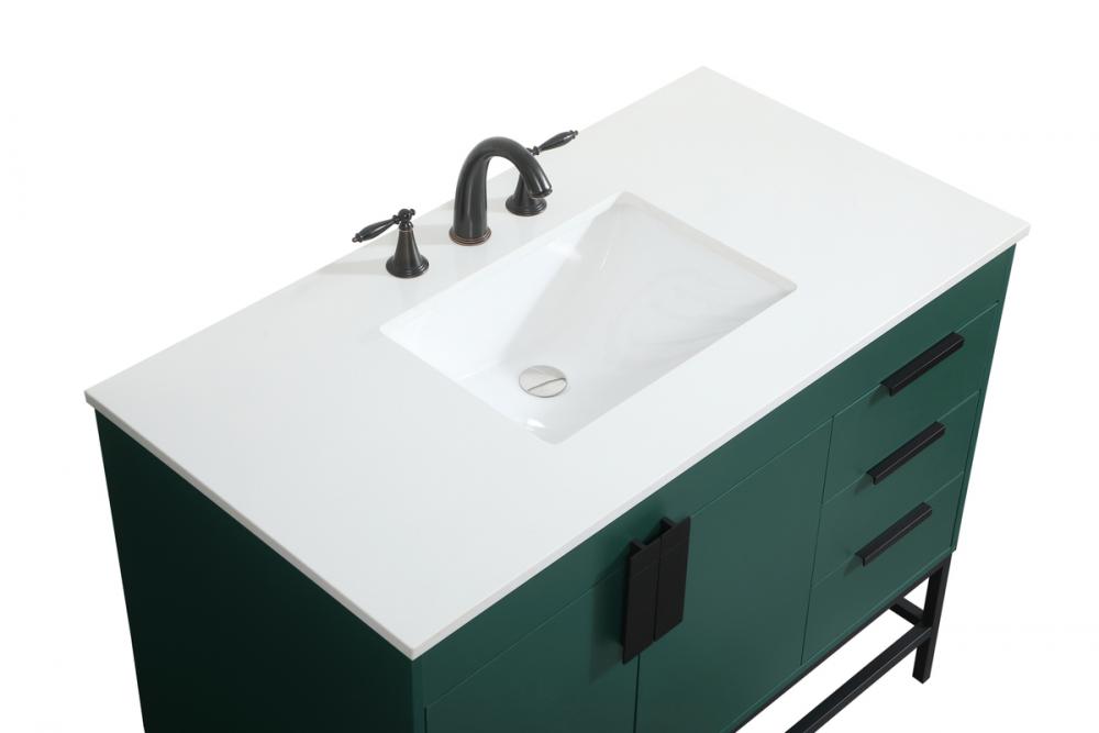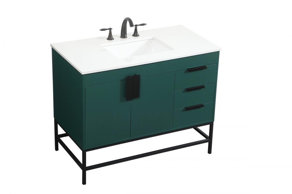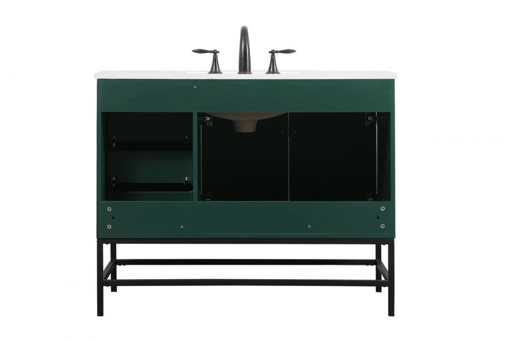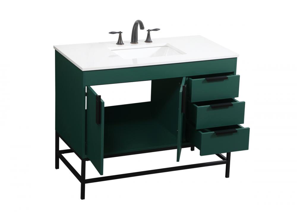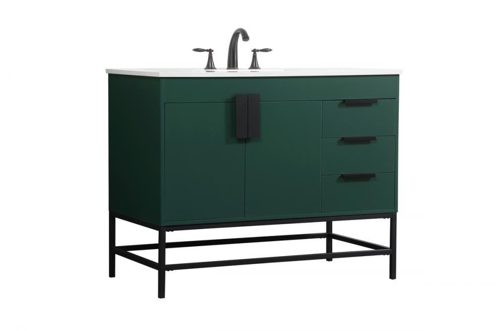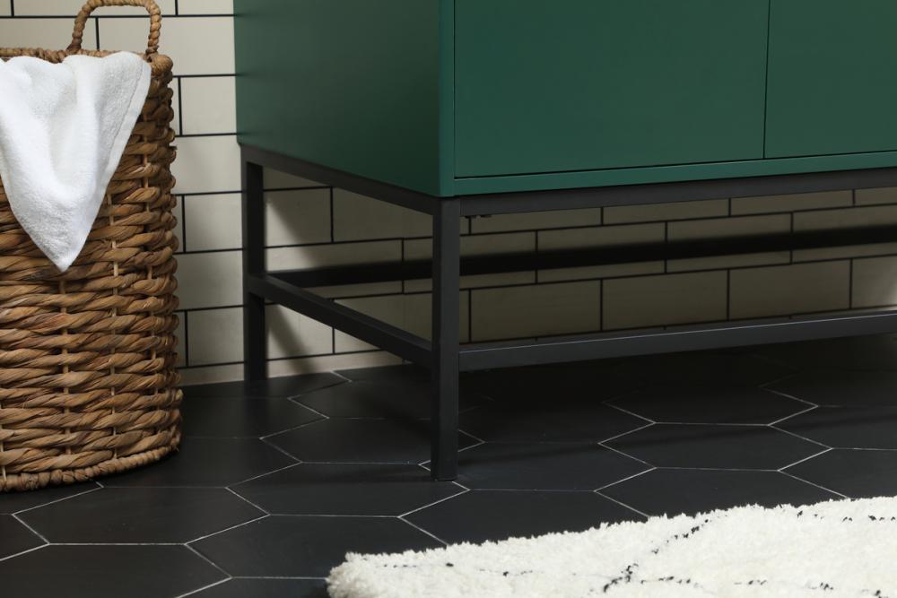 This vanity is a sleek-looking piece of bathroom furniture that is easy to incorporate into your design scheme. The cabinet features a smooth door panel with an oversized steel handle and soft close hinges provide ample room for accessories. Constructed of engineered wood, the powder-coated metal rod legs are an urban industrial look that we love. Minor assembly of the metal legs needed to get this vanity up and running.