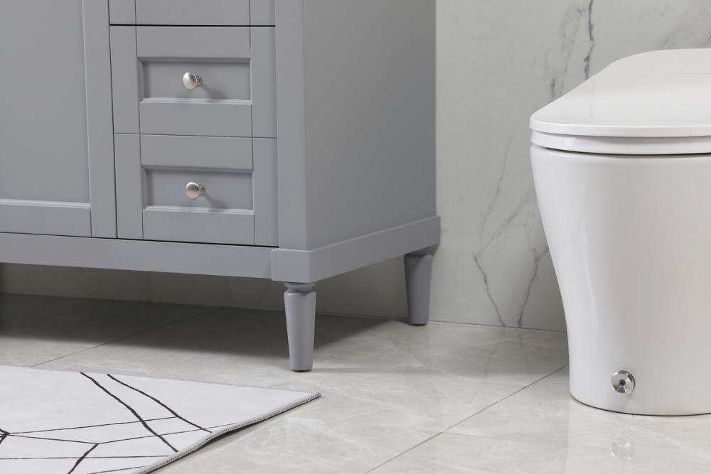 This transitional vanity is a beautiful piece of bathroom furniture will look amazing in your design scheme. The cabinet features a shaker style smooth door panel with simple round knobs and soft close hinges provide ample room for accessories. Packed with multiple side drawers with soft close glides for added comfort and full access to bath supplies. Convenient deep drawer stores all of your tall bath essentials. Constructed of engineered wood and solid wood legs with hand painted finish. The durable engineered marble countertop is a versatile material in an ivory white finish. Minor assembly of the legs needed to get this vanity up and running. Comes with a matching backsplash to complete the look and protects your wall.