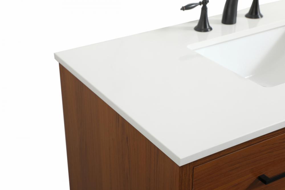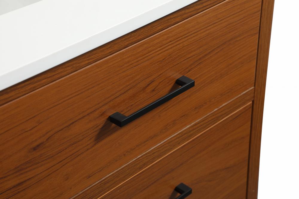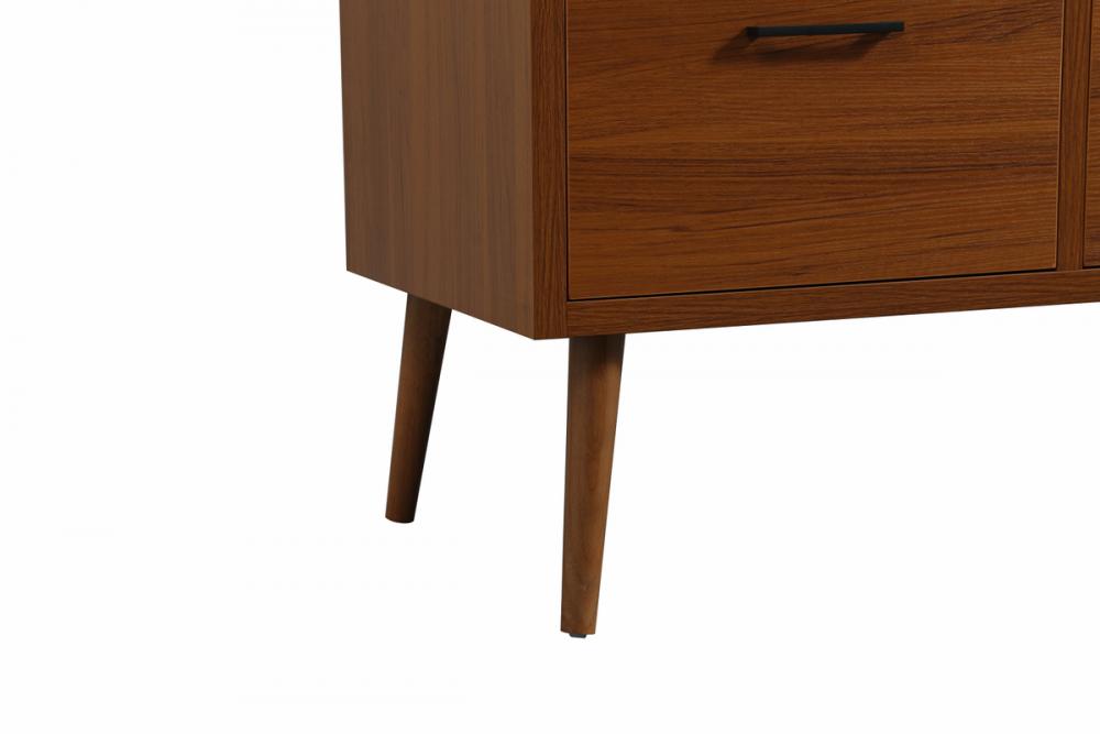 This bathroom vanity is a perfect way to outfit your home in authetic midcentury modern style. The clean lines anchors the design, while the oblique tapered cylinder legs add subtle interest. A black handle adorns the top drawer hiding the base of the undermount porcelain sink while another one allows you to pull the bottom drawer out, letting you store your bathroom necessities and toiletries. The storage drawers provide much needed function and can be used for stowing items like extra toothbrushes, hairbrushes, and other bathroom essentials to help you get ready to face the day. This vanity is a quick update for your bathroom with trendy style.