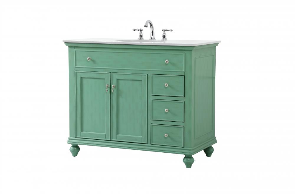 42 inch Single Bathroom vanity in vintage mint with ivory white engineered marble