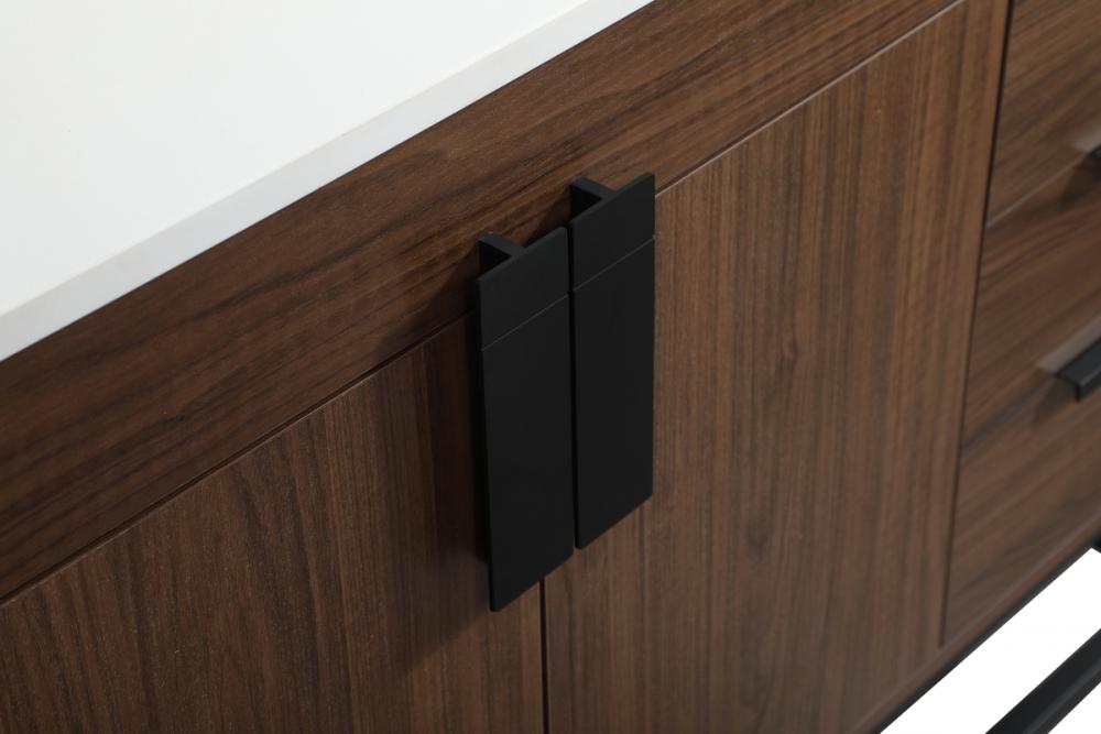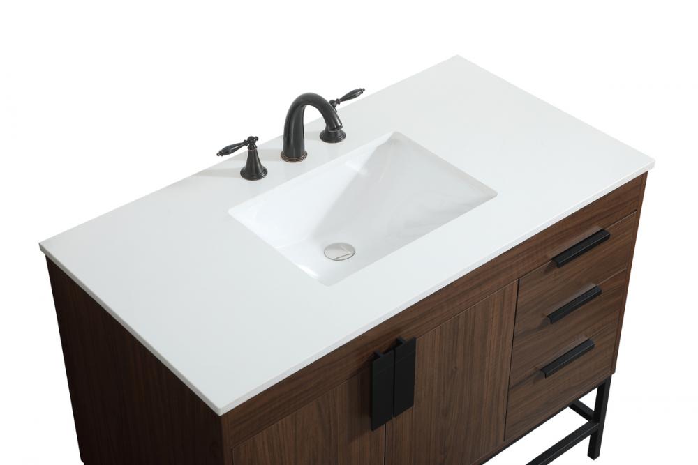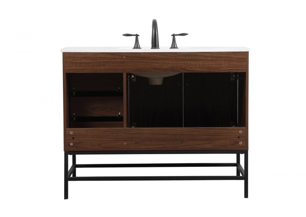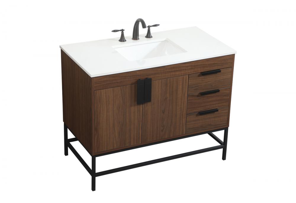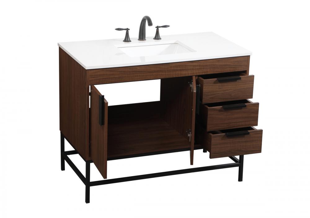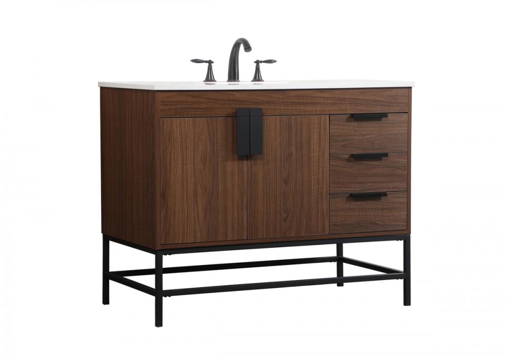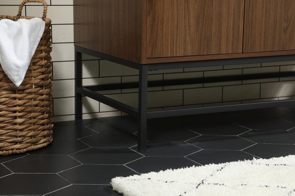 This vanity is a sleek-looking piece of bathroom furniture that is easy to incorporate into your design scheme. The cabinet features a smooth door panel with an oversized steel handle and soft close hinges provide ample room for accessories. Constructed of engineered wood, the powder-coated metal rod legs are an urban industrial look that we love. Minor assembly of the metal legs needed to get this vanity up and running.