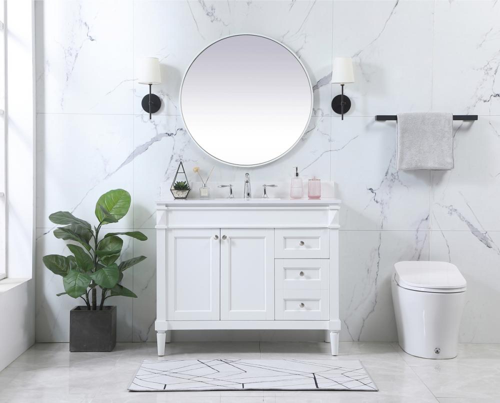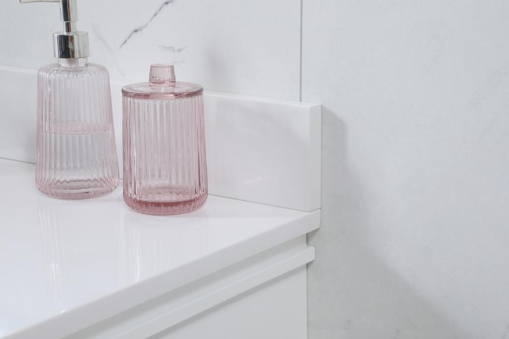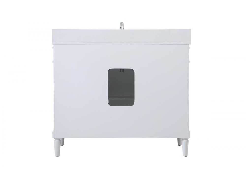 Crafted with durable engineered marble top in ivory white finish and vanity base is hand painted