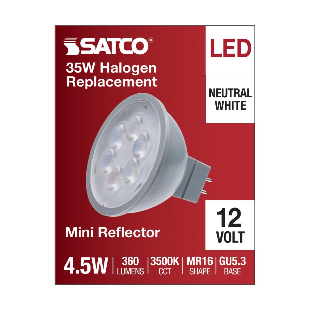 4.5 Watt MR16 LED; Silver Finish; 3500K; GU5.3 Base; 360 Lumens; 12 Volt