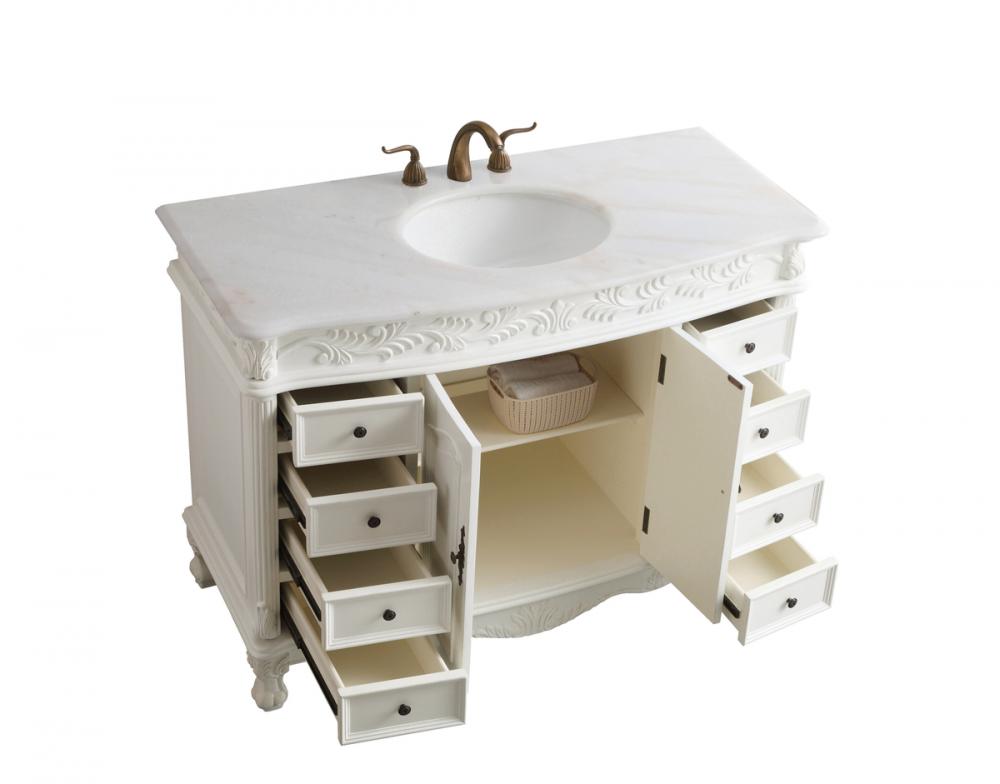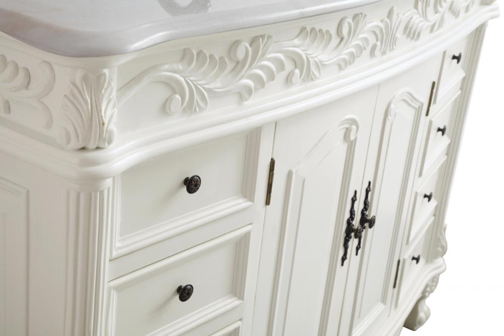 Our “Bordeaux” line of exquisite vanities includes this handpainted teak finish console with an authentic cream marble countertop, perfect to adorn your master bathroom or powder room!