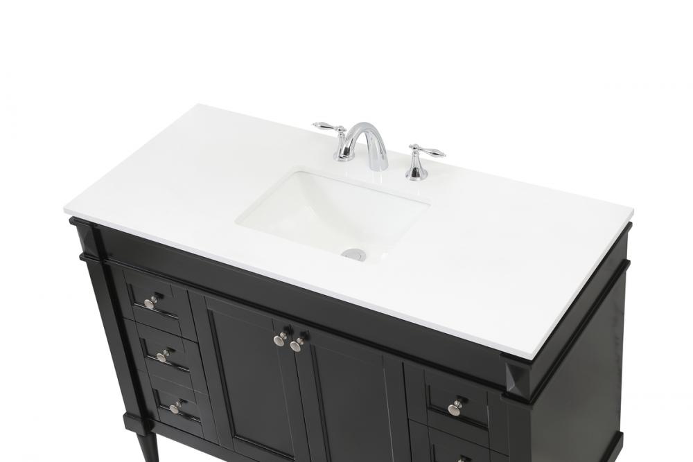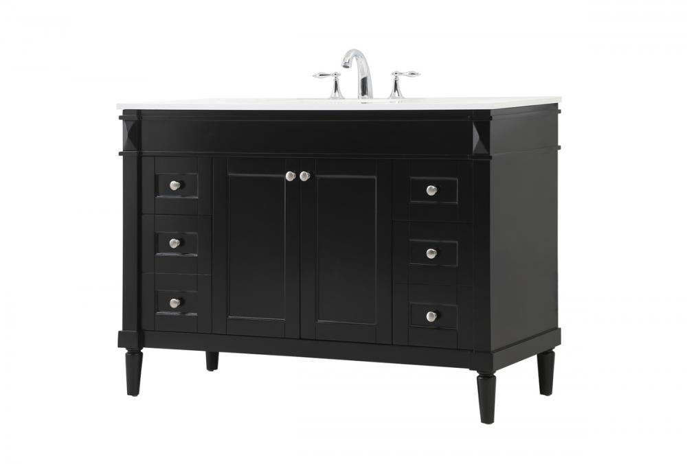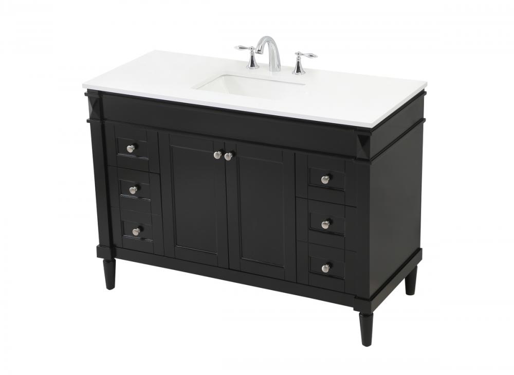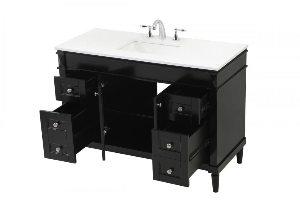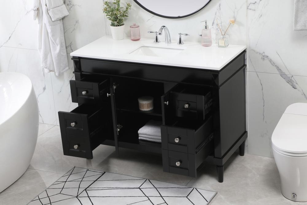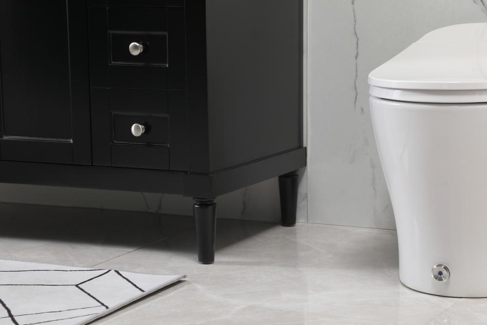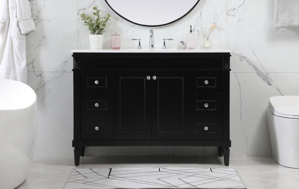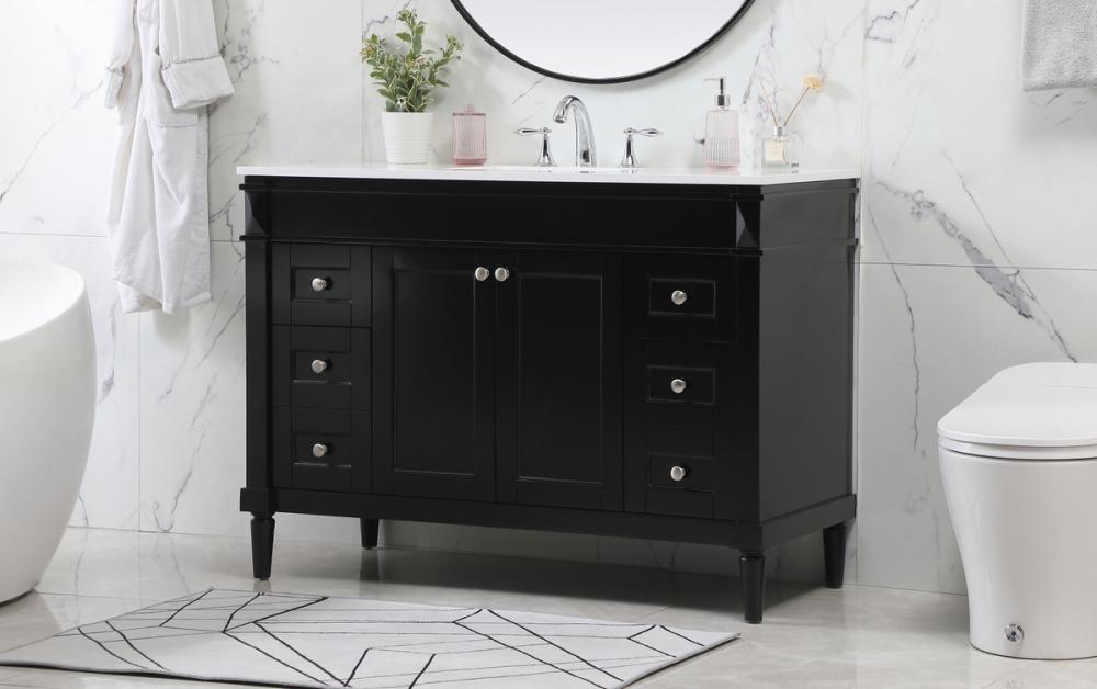 This transitional vanity is a beautiful piece of bathroom furniture will look amazing in your design scheme. The cabinet features a shaker style smooth door panel with simple round knobs and soft close hinges provide ample room for accessories. Packed with multiple side drawers with soft close glides for added comfort and full access to bath supplies. Convenient deep drawer stores all of your tall bath essentials. Constructed of engineered wood and solid wood legs with hand painted finish. The durable engineered marble countertop is a versatile material in an ivory white finish. Minor assembly of the legs needed to get this vanity up and running.