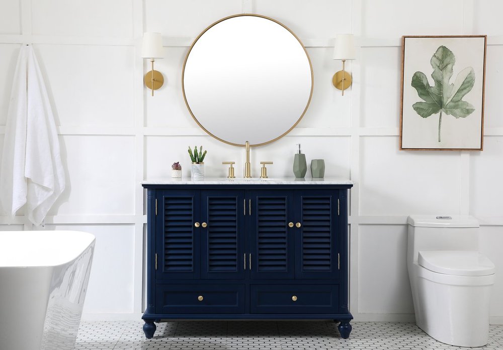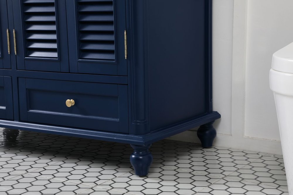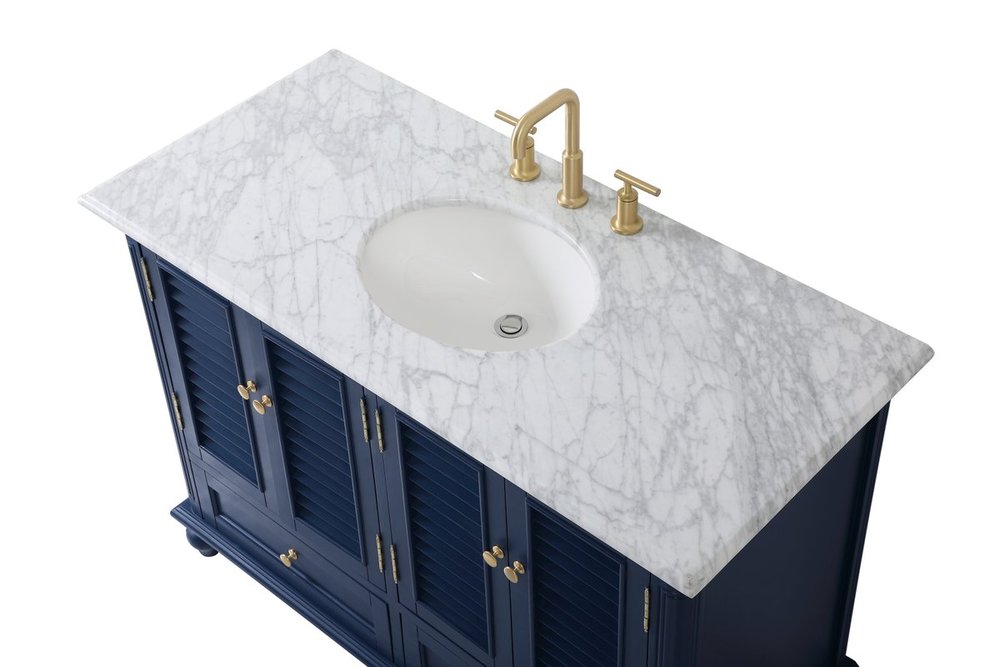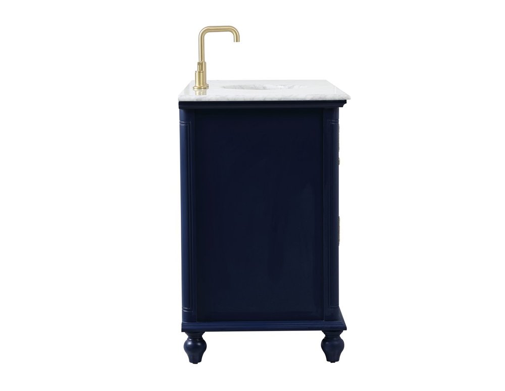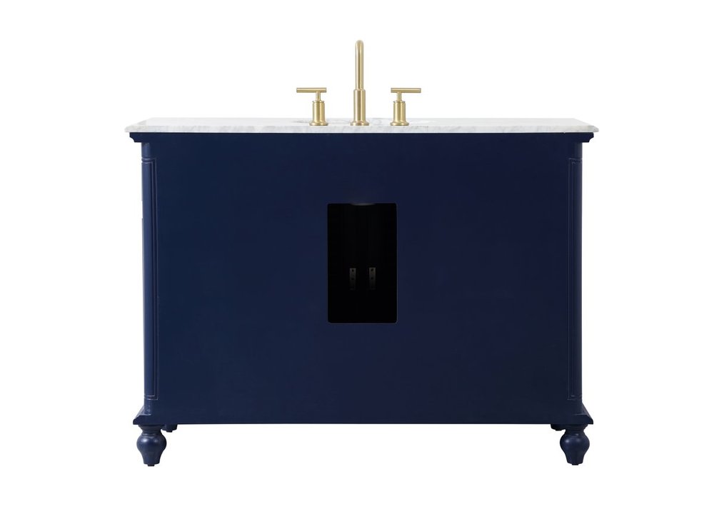 The Rhodes collection compact vanity will add lovely sophistication and complement any small bathroom or powder room, while utilizing its charm and function to provide you with ample storage spaces. Metal round knobs gently adorn the shuttered cabinet door and drawer at the base, allowing for you to store away your bathroom essentials. The Carrara white marble countertop, porcelain undermount sink, dignified subtle engravings on the side edges, and rounded legs all come together to create contemporary beauty. Work with your space, and design a beautiful room, no matter the size.
