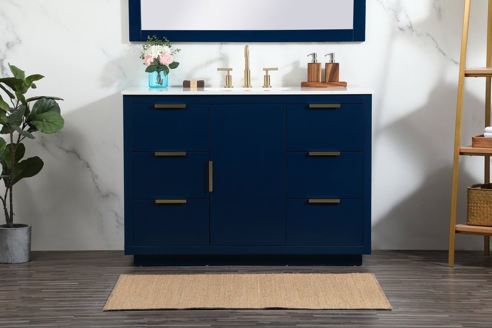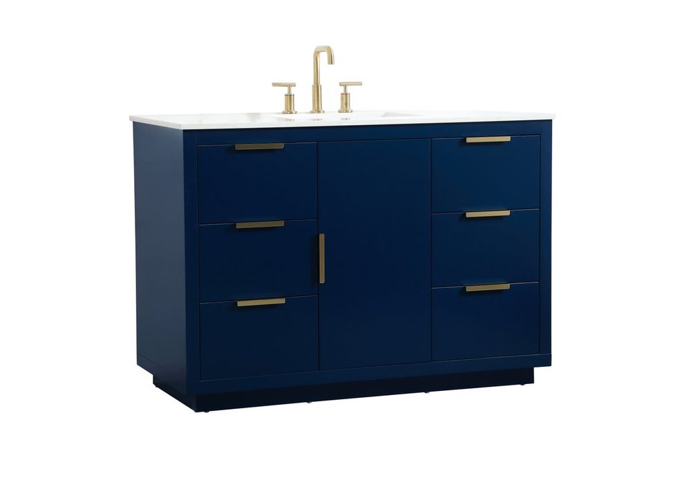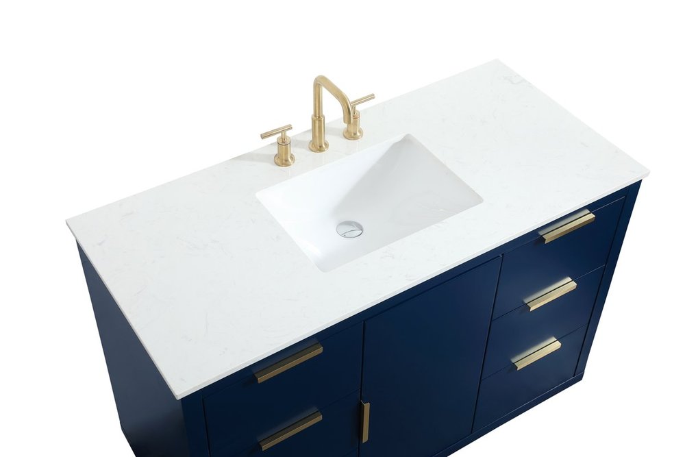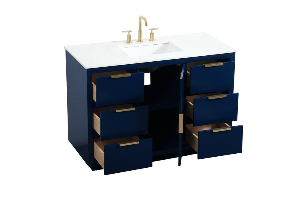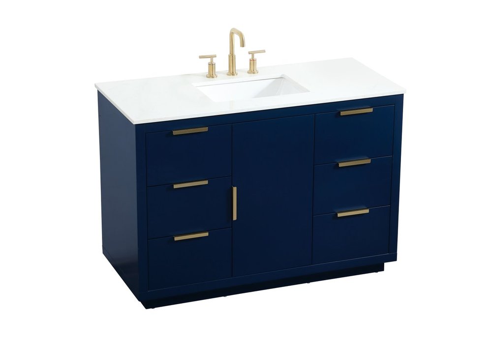 The Blake collection vanity cabinet will be a modern furniture statement piece in your bathroom. Our color combination creates a calming atmosphere in the room. The gold handles bring a vibrant touch to balance the vanity. With the simplistic clean lines, the cabinet catches eyes with its beautiful smooth surface. Open the cabinet doors to store what you desire and make use of the spacious area. Gently close the door and the soft closing glides will quietly closes the door. To top it off, the calacatta engineered marble adds a luxury and modern finish to the durable stonetop.