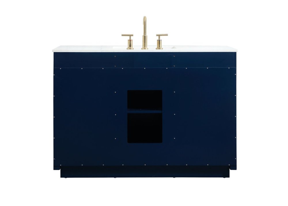 Comes with an undermount porcelain sink and a durable calacatta engineered marble stone top