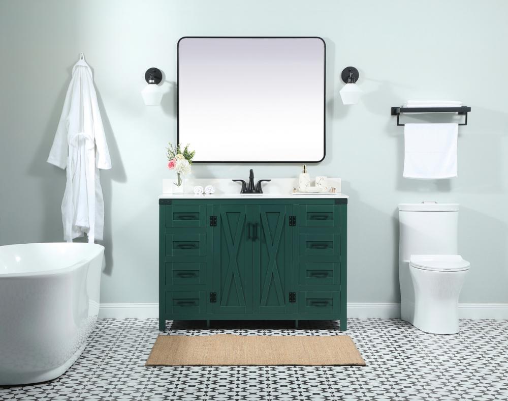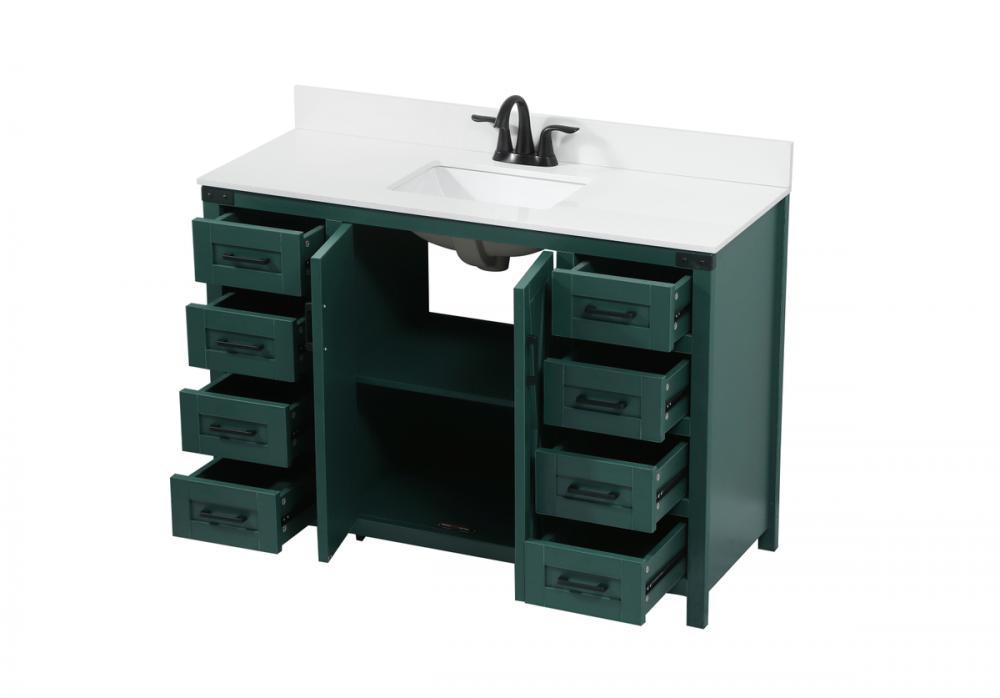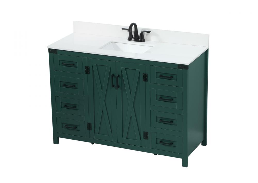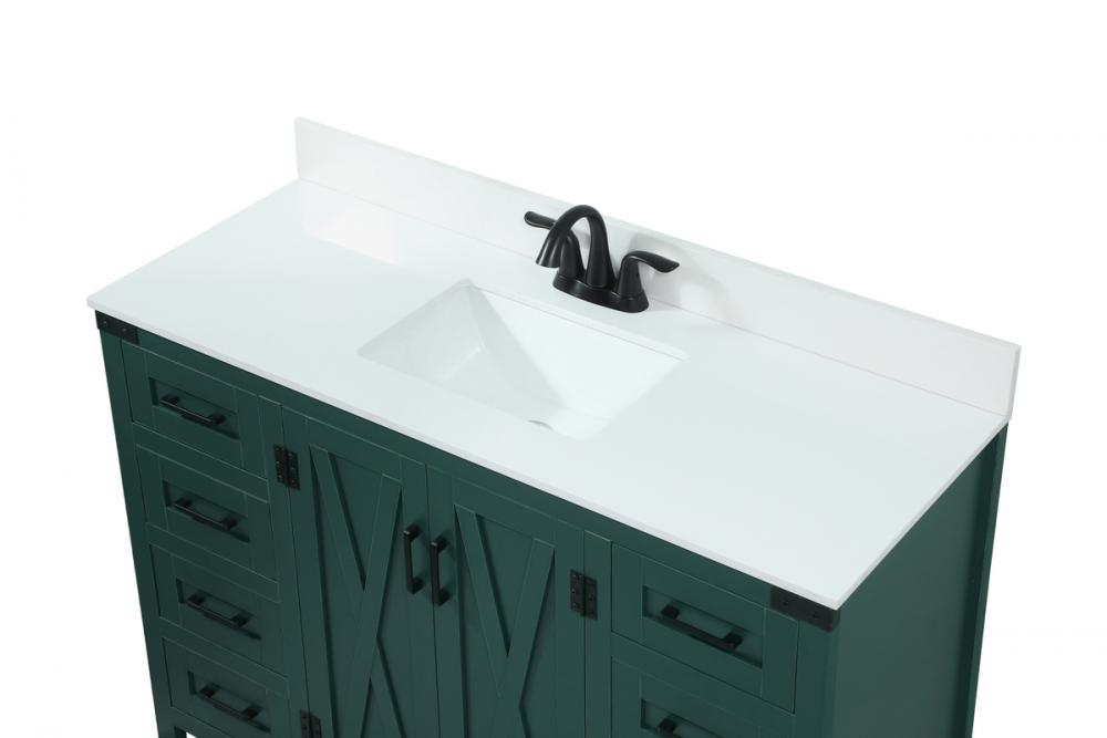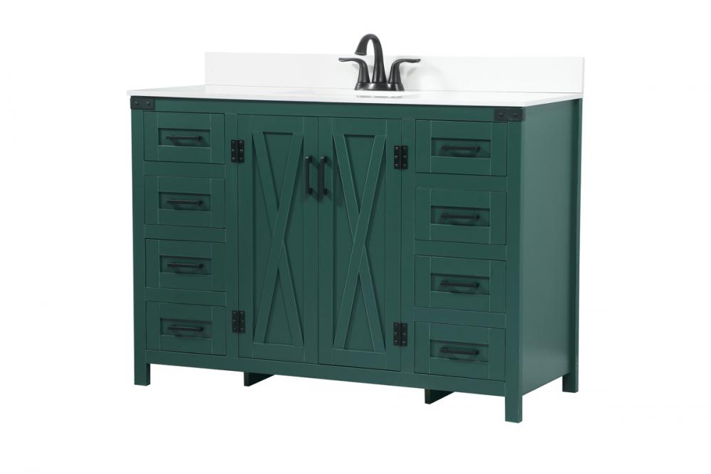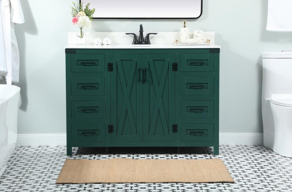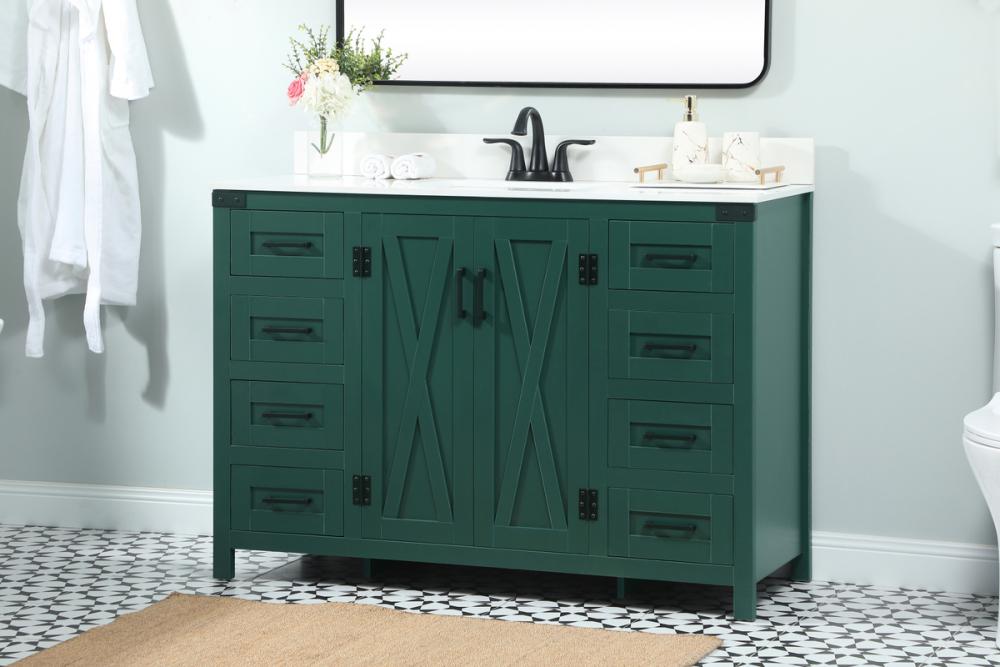 Reminiscent of barn doors, the two door cabinet and eight drawers adds both stylistic charm and function with its plethora of storage options for all your bathroom essentials. Whether for your bathroom or the guests', everyone will marvel at its classic look for traditional and farmhouse aesthetics. A slab of engineered marble rounds out the piece up top, as well as the porcelain under mount sink and predrilled faucet holes. This vanity arrives fully assembled. Comes with a matching backsplash to complete the look and protects your wall.
