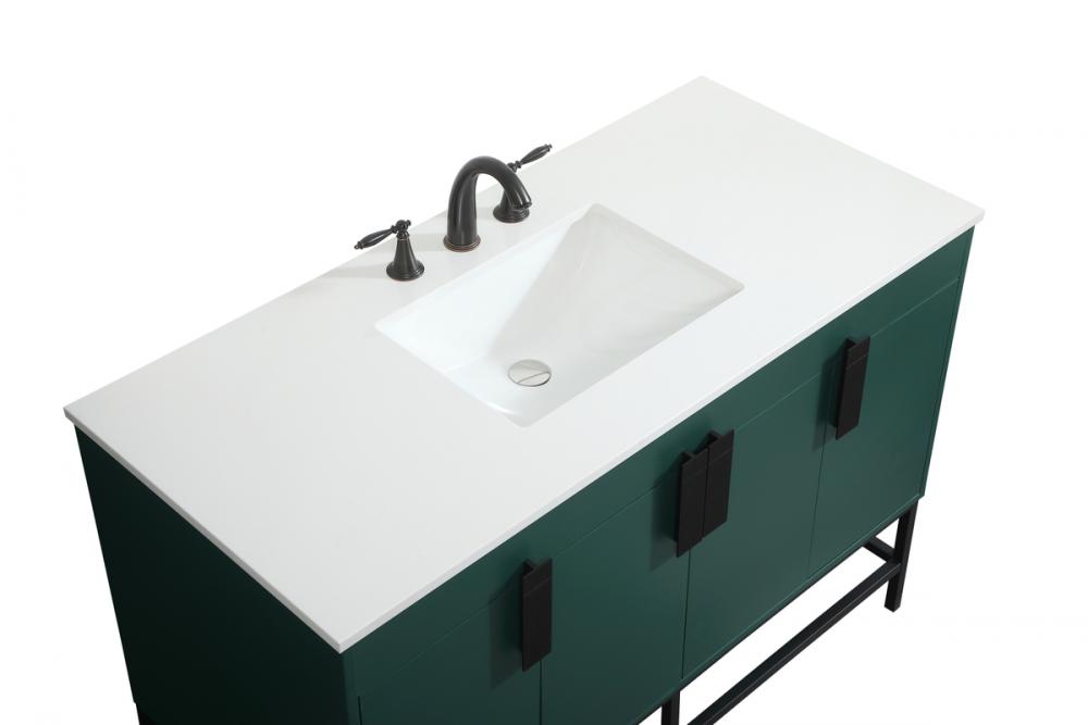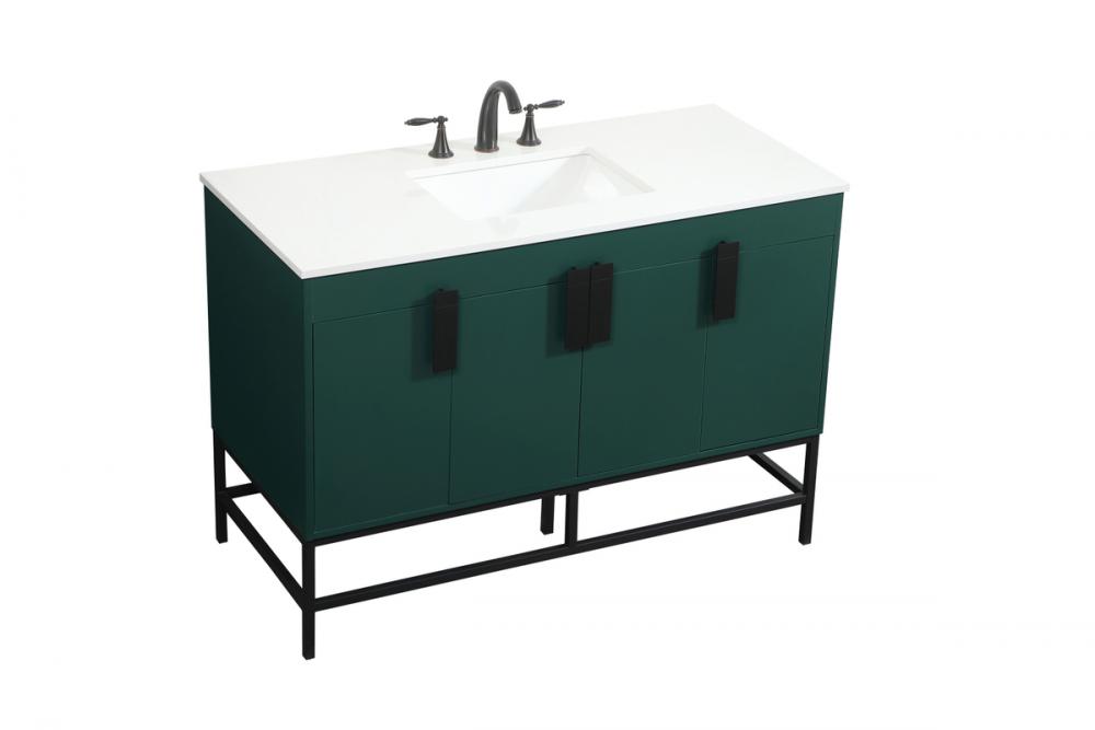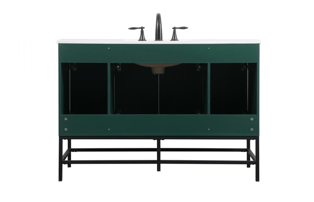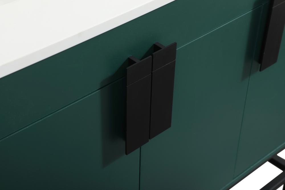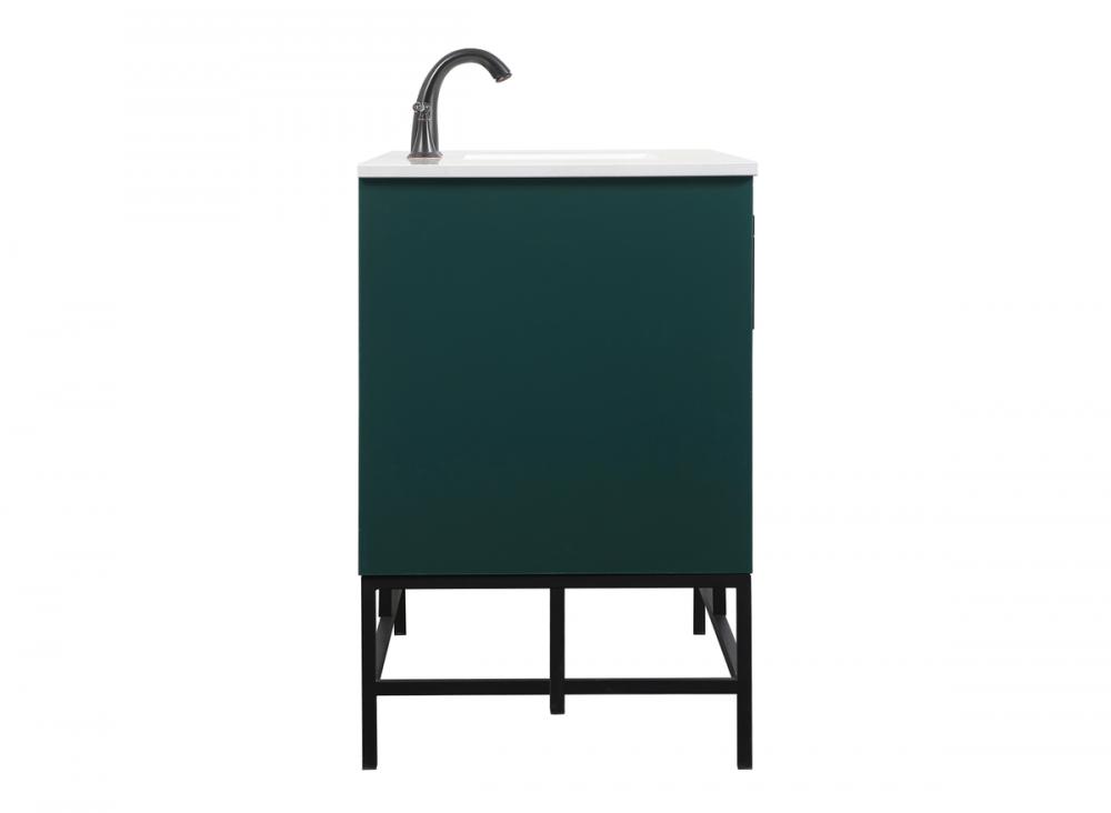 This vanity is a sleek-looking piece of bathroom furniture that is easy to incorporate into your design scheme. The cabinet features a smooth door panel with an oversized steel handle and soft close hinges provide ample room for accessories. Constructed of engineered wood, the powder-coated metal rod legs are an urban industrial look that we love. Minor assembly of the metal legs needed to get this vanity up and running.