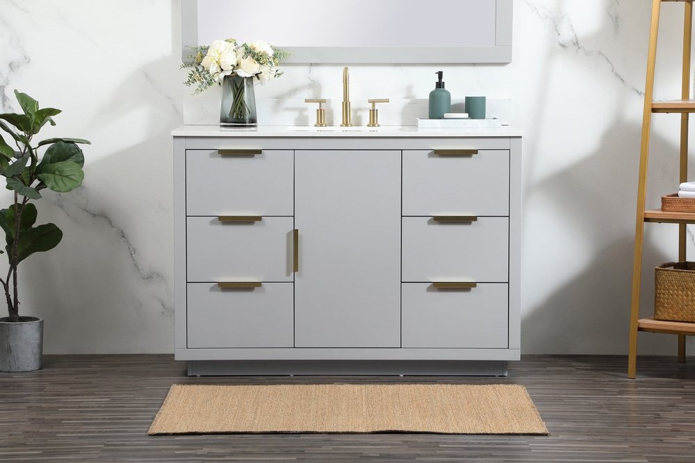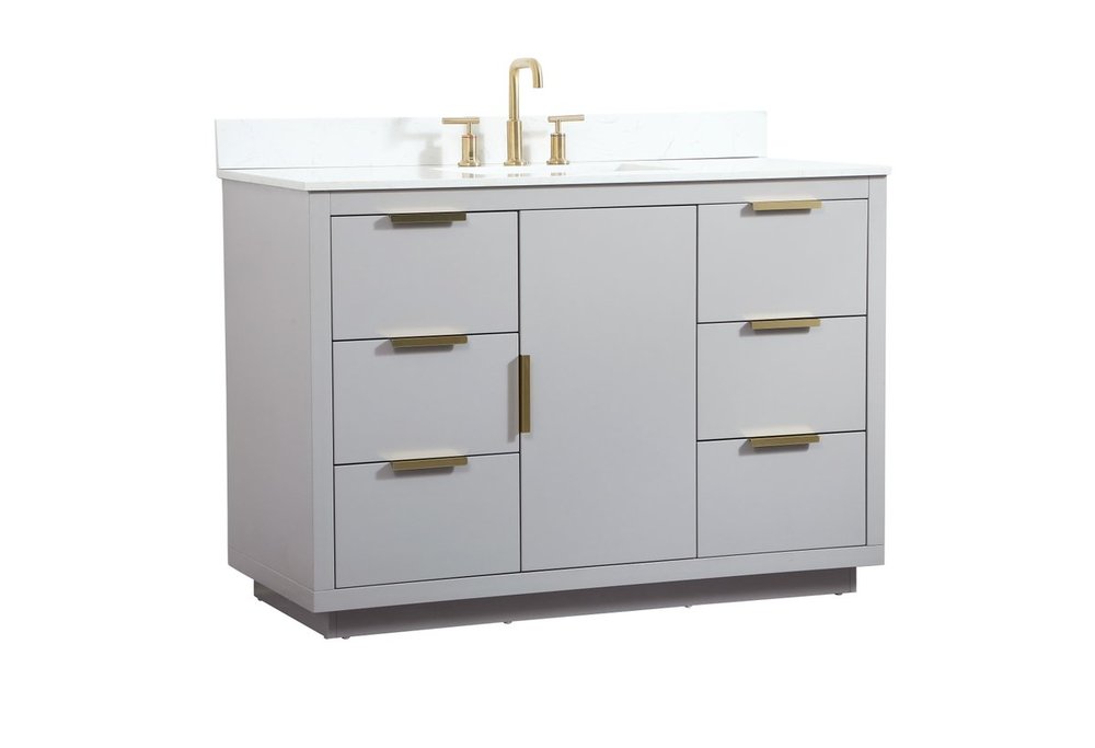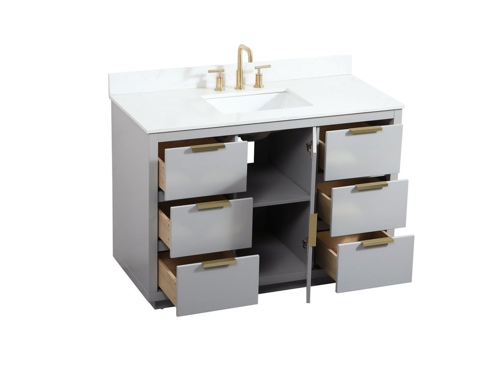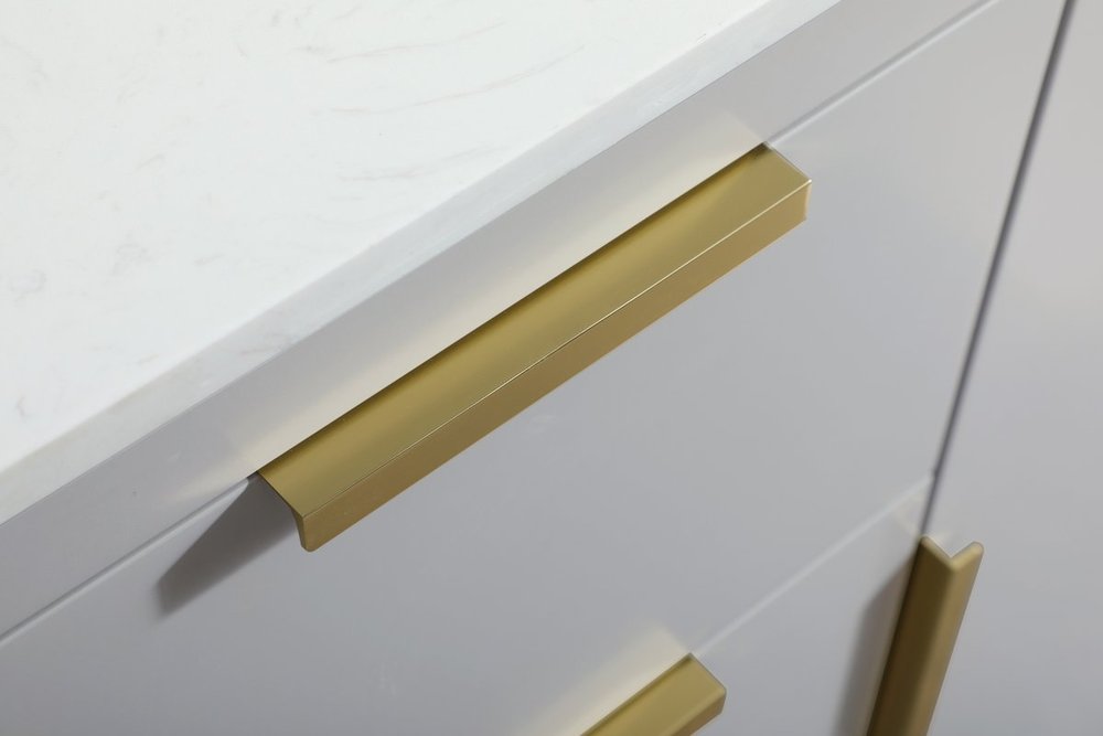 The Blake collection vanity cabinet will be a modern furniture statement piece in your bathroom. Our color combination creates a calming atmosphere in the room. The gold handles bring a vibrant touch to balance the vanity. With the simplistic clean lines, the cabinet catches eyes with its beautiful smooth surface. Open the cabinet doors to store what you desire and make use of the spacious area. Gently close the door and the soft closing glides will quietly closes the door. To top it off, the calacatta engineered marble adds a luxury and modern finish to the durable stonetop.
