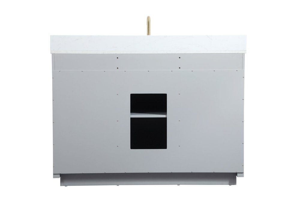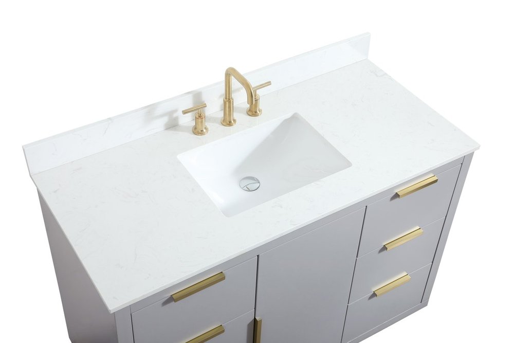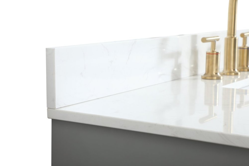 Comes with an undermount porcelain sink and a durable calacatta engineered marble stone top