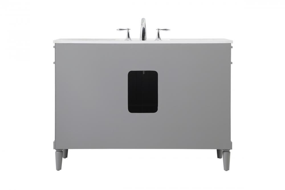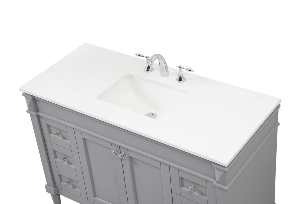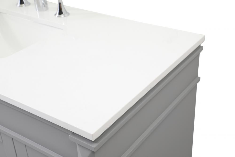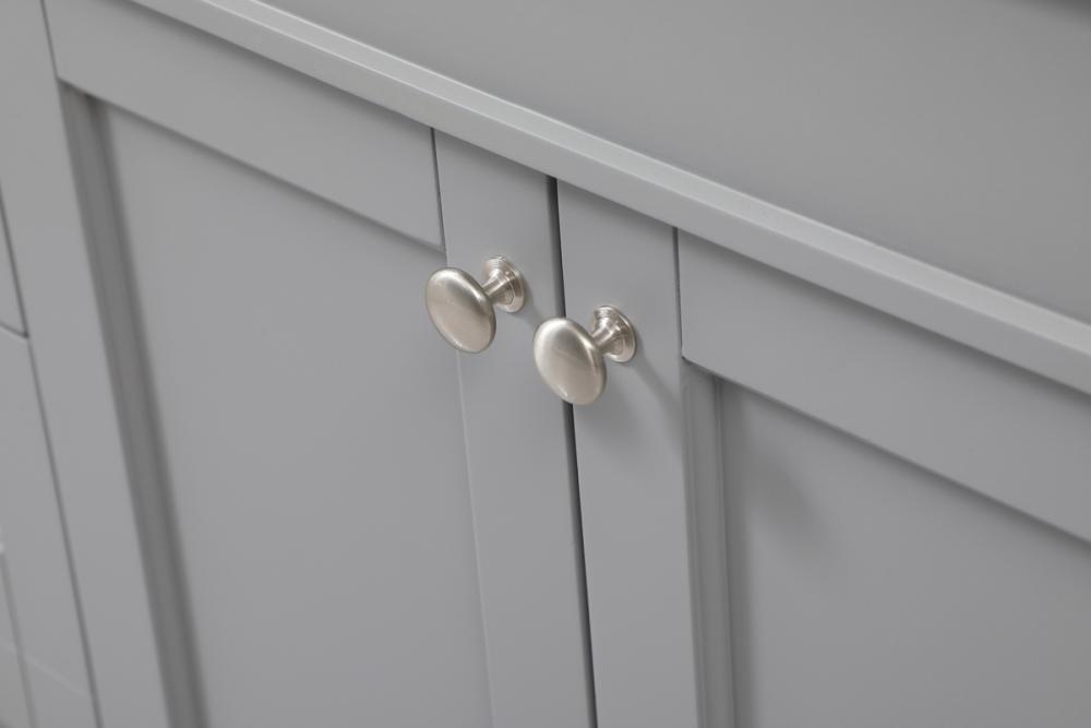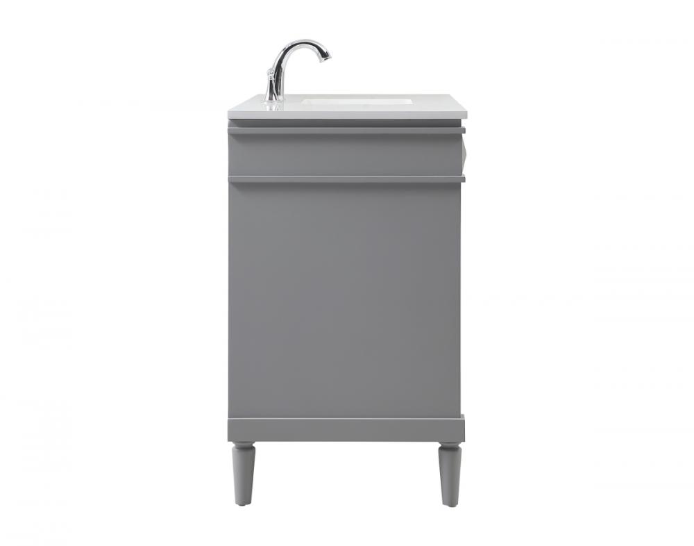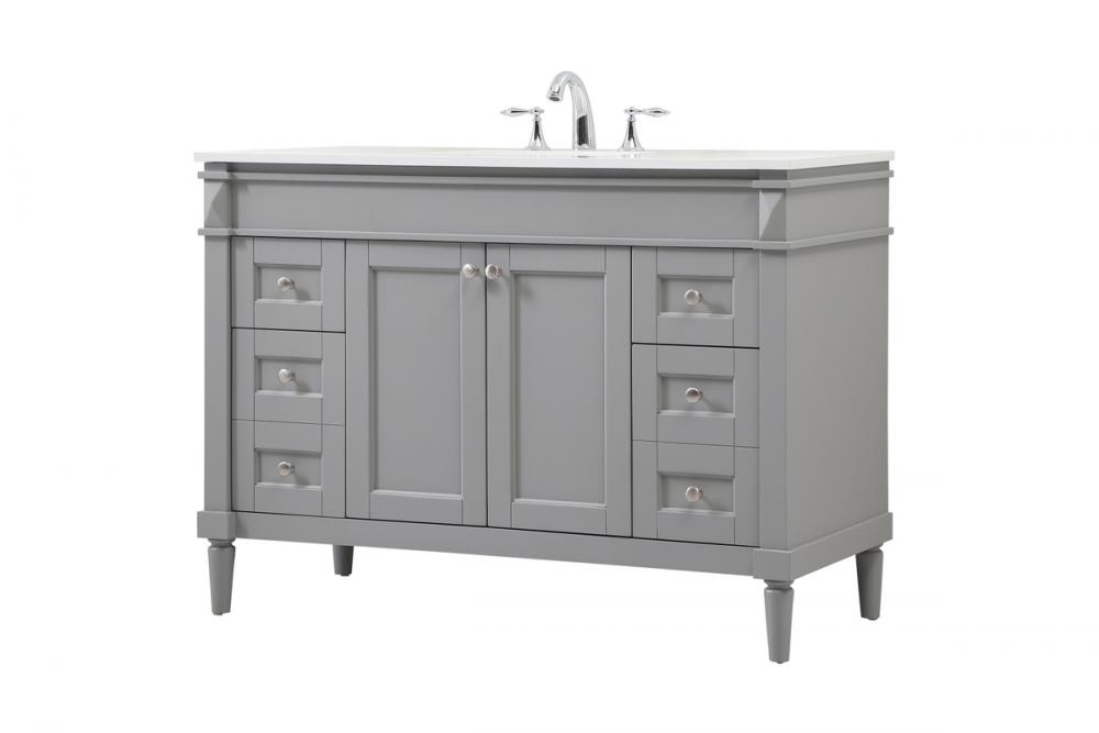 This transitional vanity is a beautiful piece of bathroom furniture will look amazing in your design scheme. The cabinet features a shaker style smooth door panel with simple round knobs and soft close hinges provide ample room for accessories. Packed with multiple side drawers with soft close glides for added comfort and full access to bath supplies. Convenient deep drawer stores all of your tall bath essentials. Constructed of engineered wood and solid wood legs with hand painted finish. The durable engineered marble countertop is a versatile material in an ivory white finish. Minor assembly of the legs needed to get this vanity up and running.
