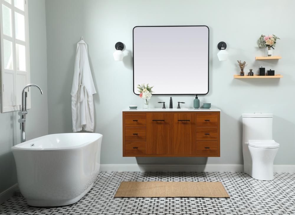 Vanity can be wall mounted without the solid wood legs or install as a freestanding unit