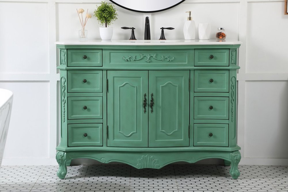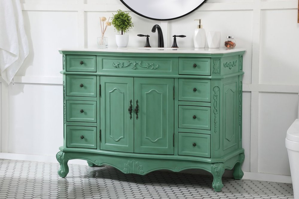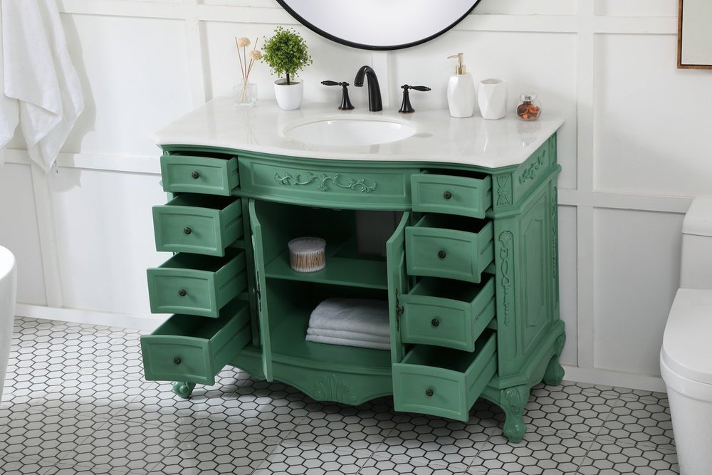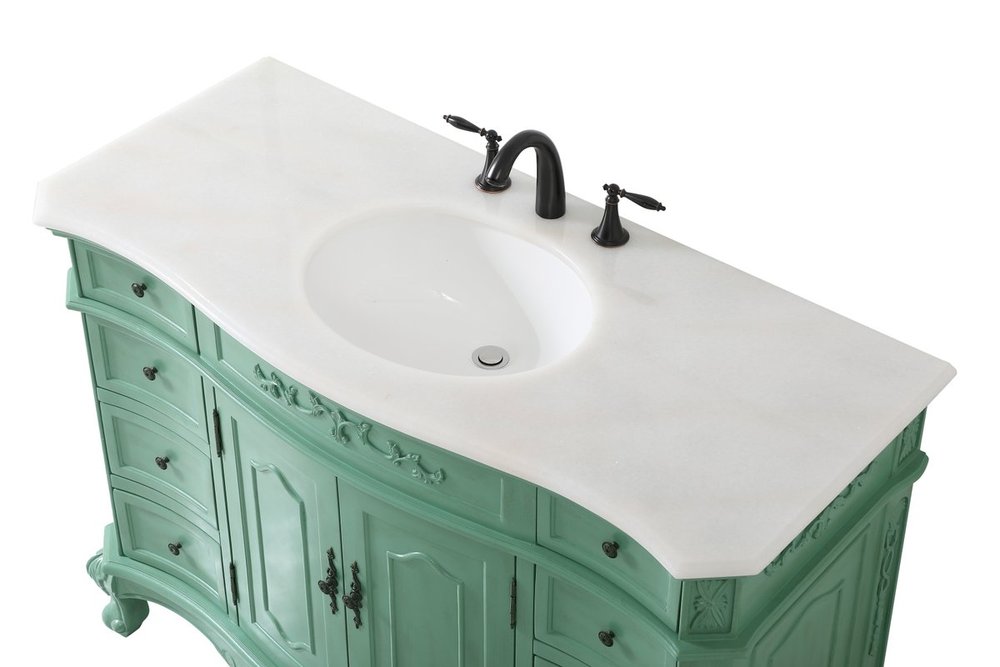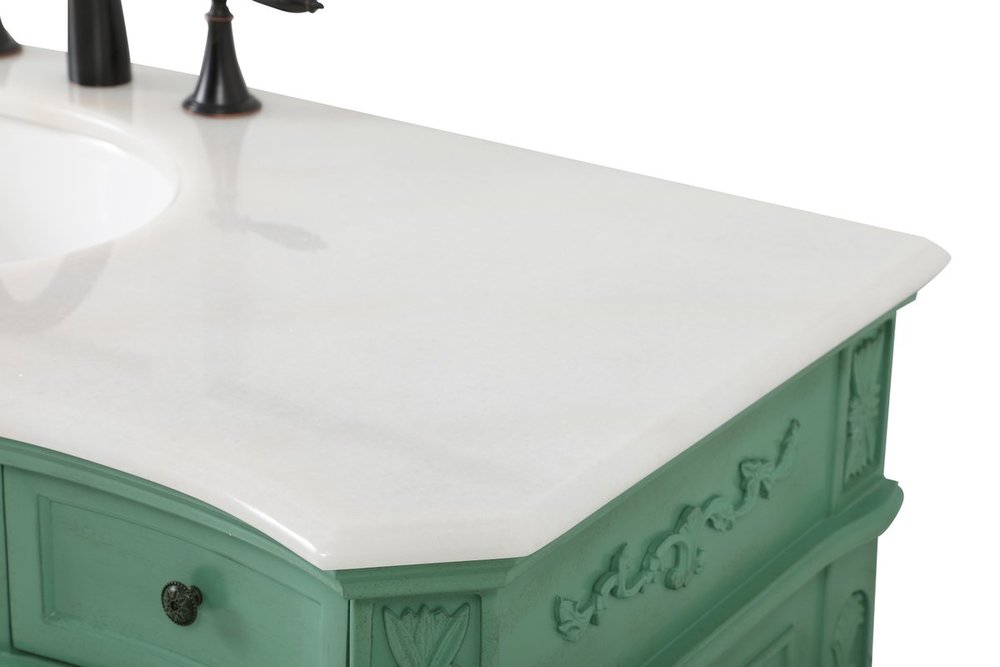 Comes with an off-white marble top with slight brown veining and bevel edge design, please note that due to the natural characteristics of the stone, the color and/or pattern of each countertop may vary from the pictures.