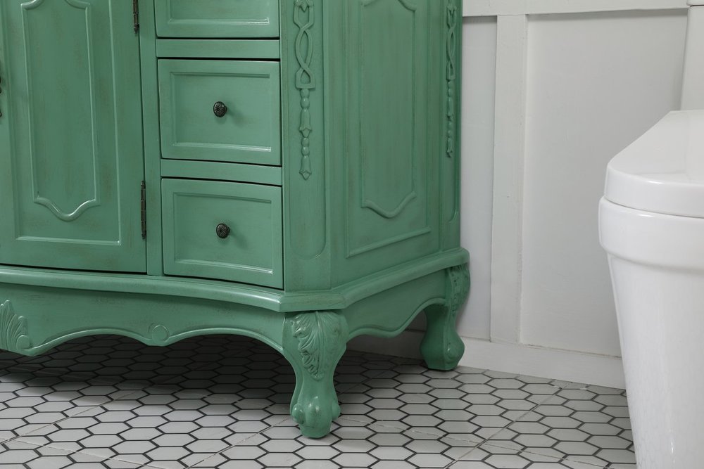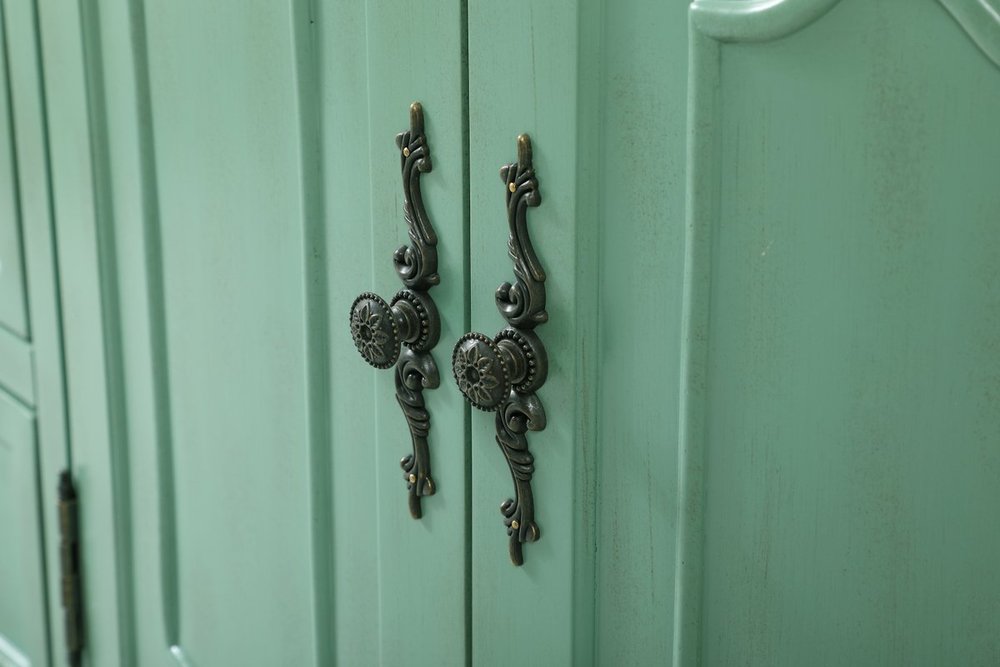 Hand painted in vintage mint finish with distress paint application