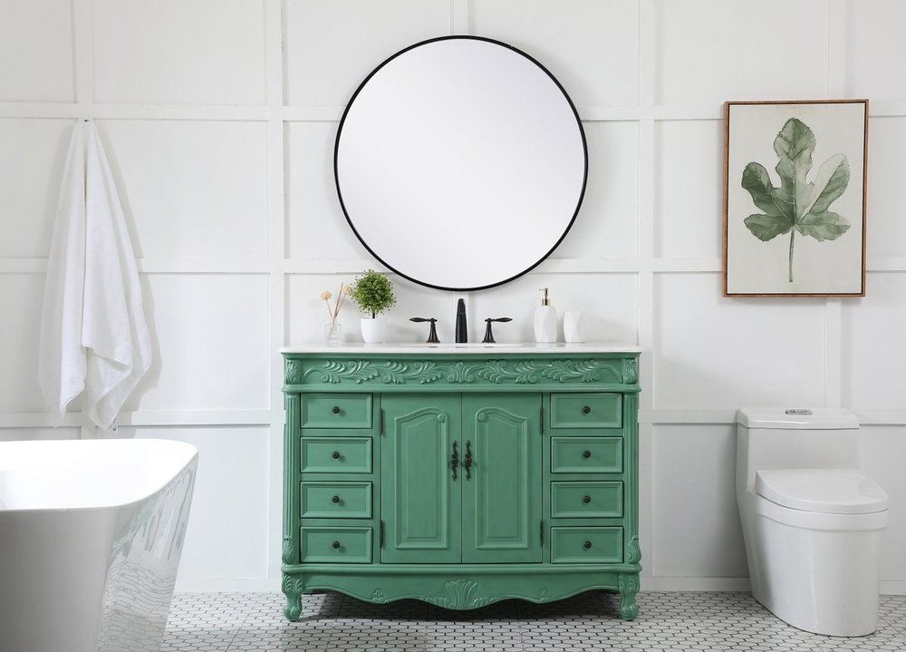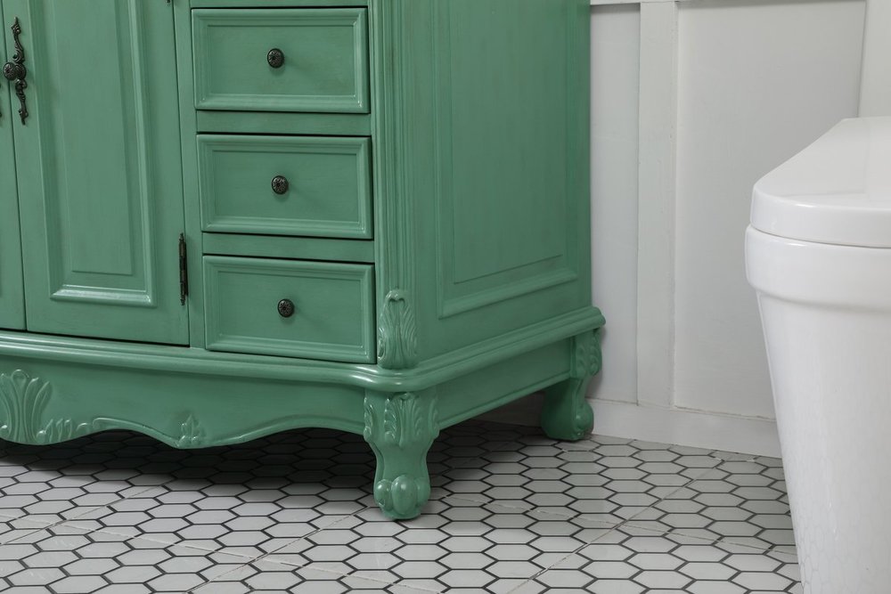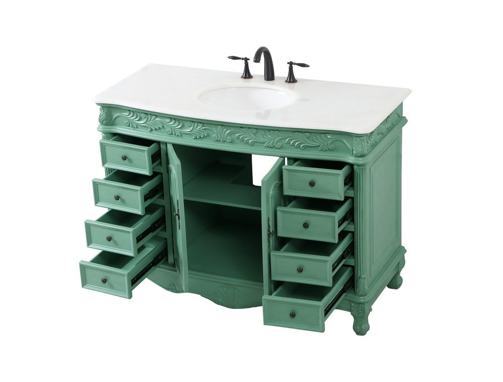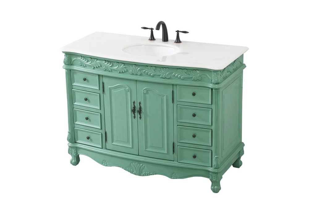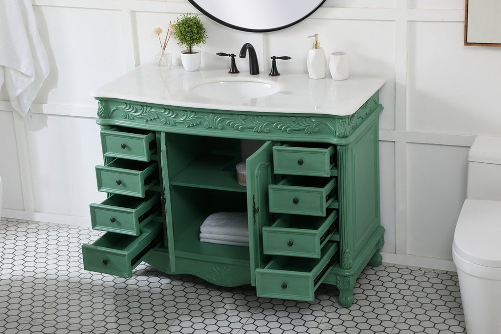 Comes with an off-white marble top with slight brown veining and bevel edge design, please note that due to the natural characteristics of the stone, the color and/or pattern of each countertop may vary from the pictures.