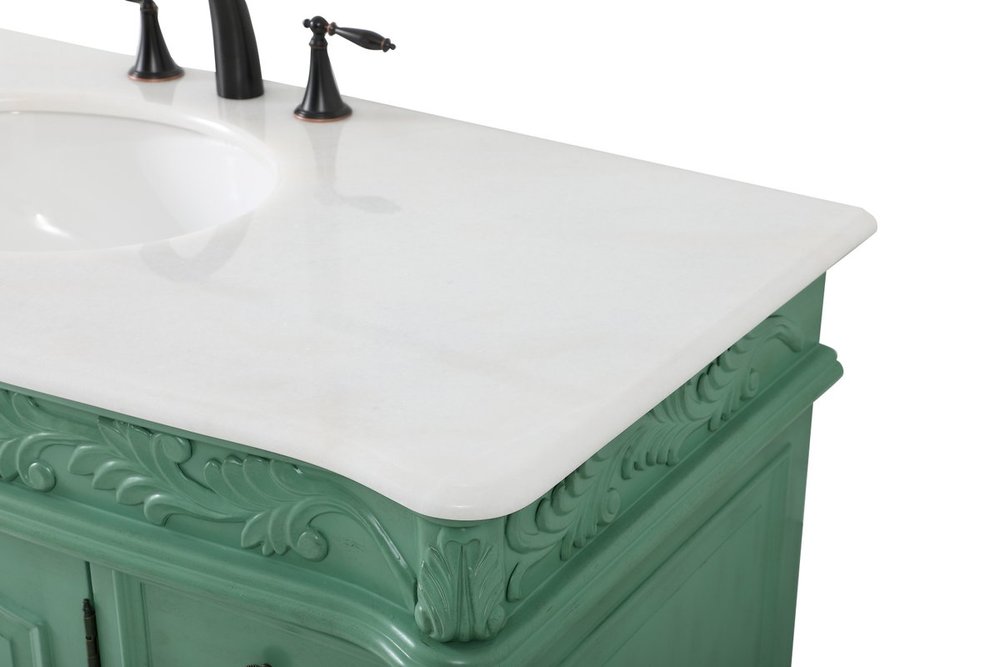 Create a refined and relaxing bath space with this traditional design vanity, presenting its ornate lines. This vanity, crafted of solid poplar wood and engineered wood panels, provides ample storage within its soft-close cabinet door, accentuated with metal hardware. Rounding out the design is an off-white marble with some brown veining in the stone. Comes with a white porcelain under-mount oval sink. Ships fully assembled.