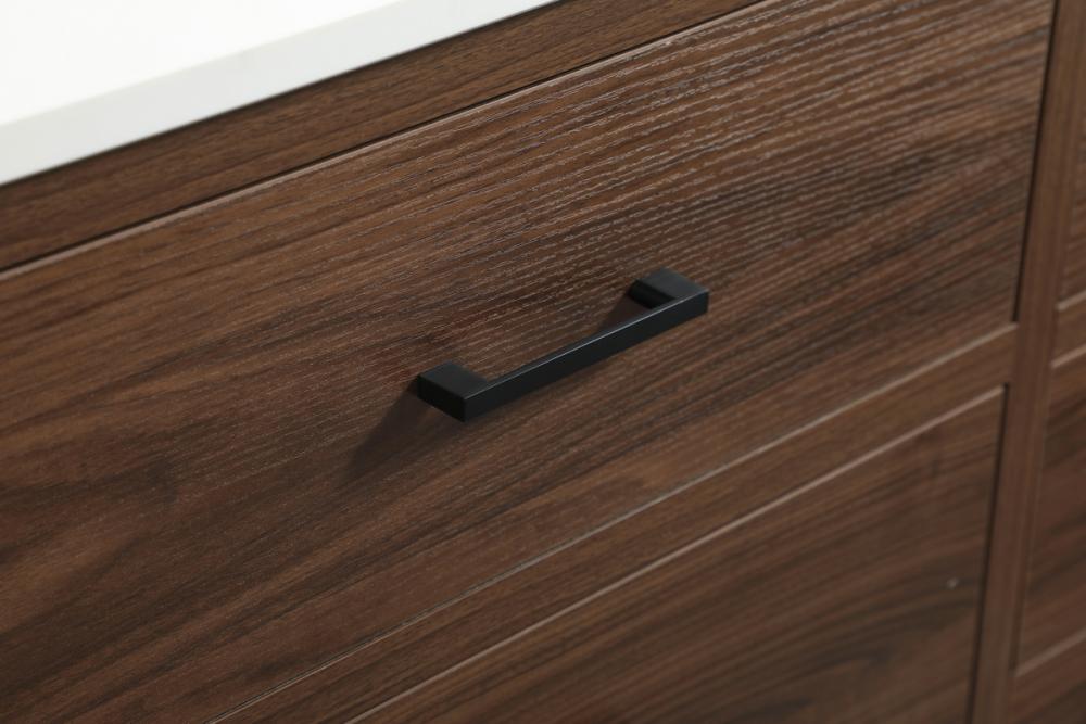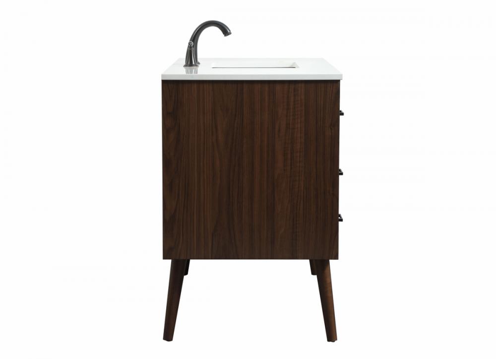 This bathroom vanity is a perfect way to outfit your home in authetic midcentury modern style. The clean lines anchors the design, while the oblique tapered cylinder legs add subtle interest. A black handle adorns the top drawer hiding the base of the undermount porcelain sink while another one allows you to pull the bottom drawer out, letting you store your bathroom necessities and toiletries. The storage drawers provide much needed function and can be used for stowing items like extra toothbrushes, hairbrushes, and other bathroom essentials to help you get ready to face the day. This vanity is a quick update for your bathroom with trendy style.