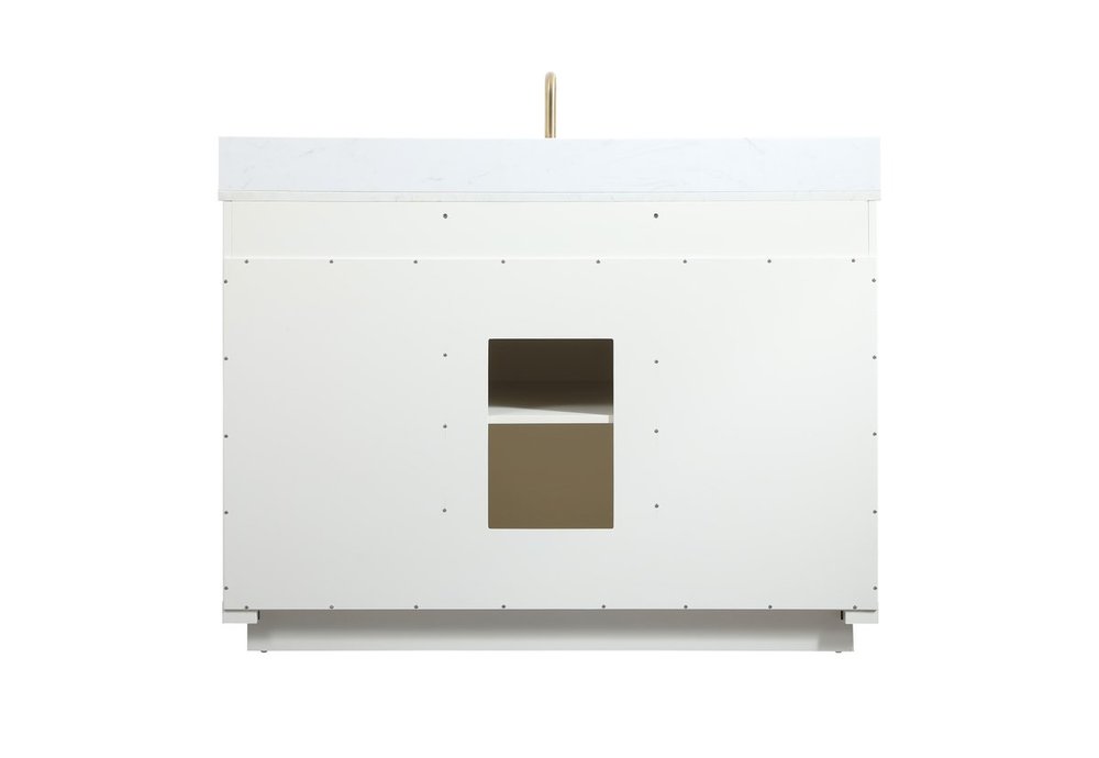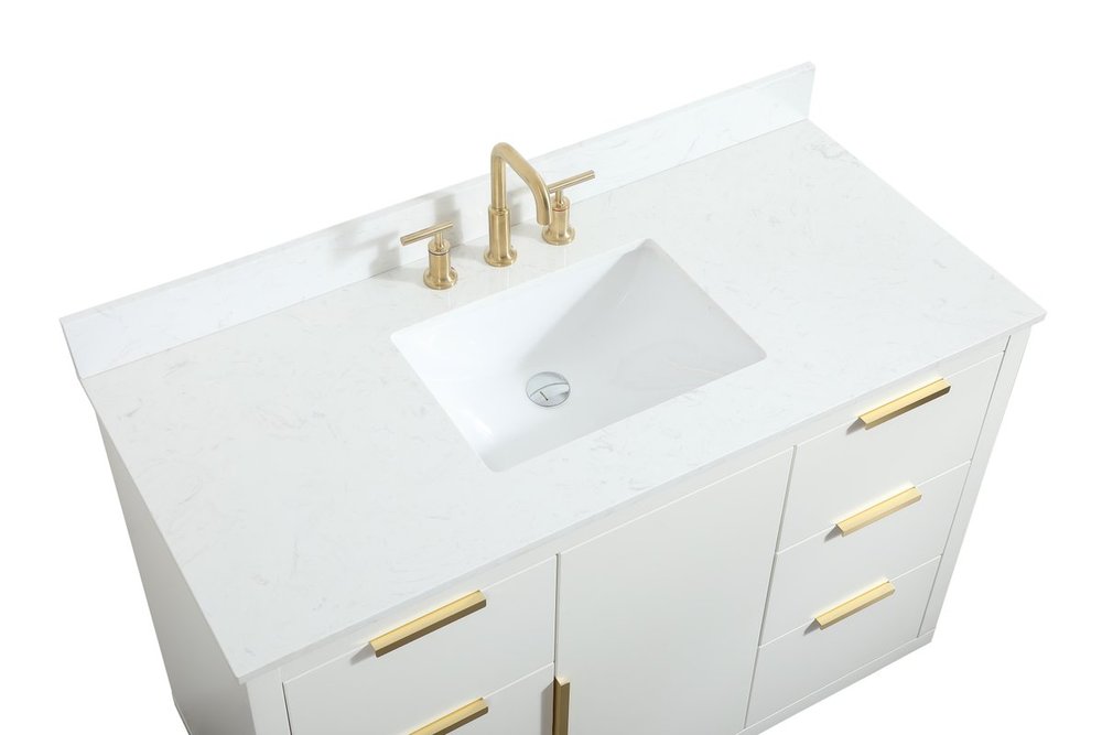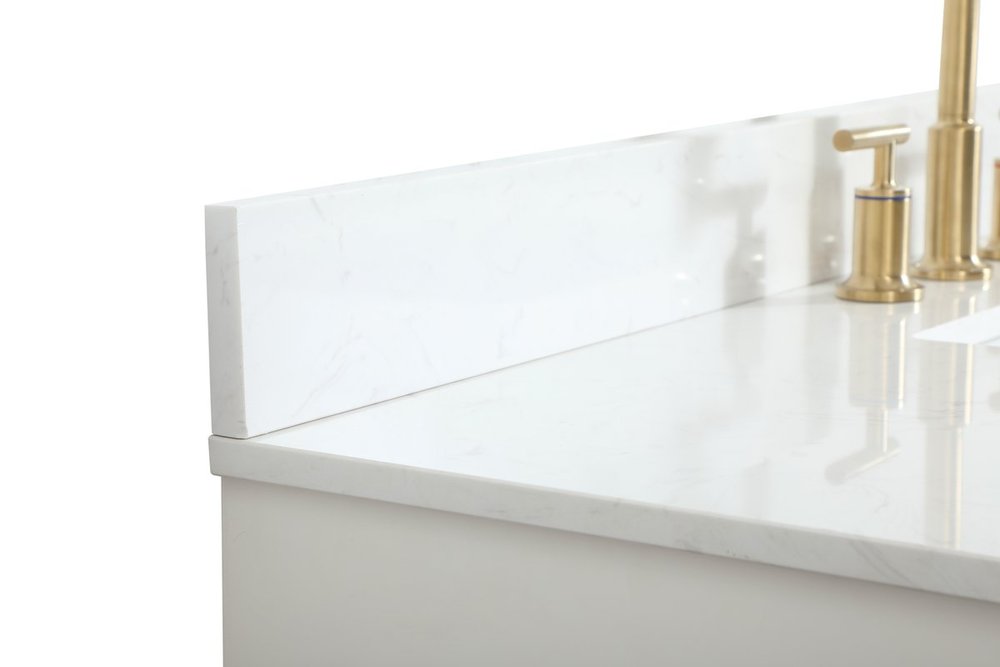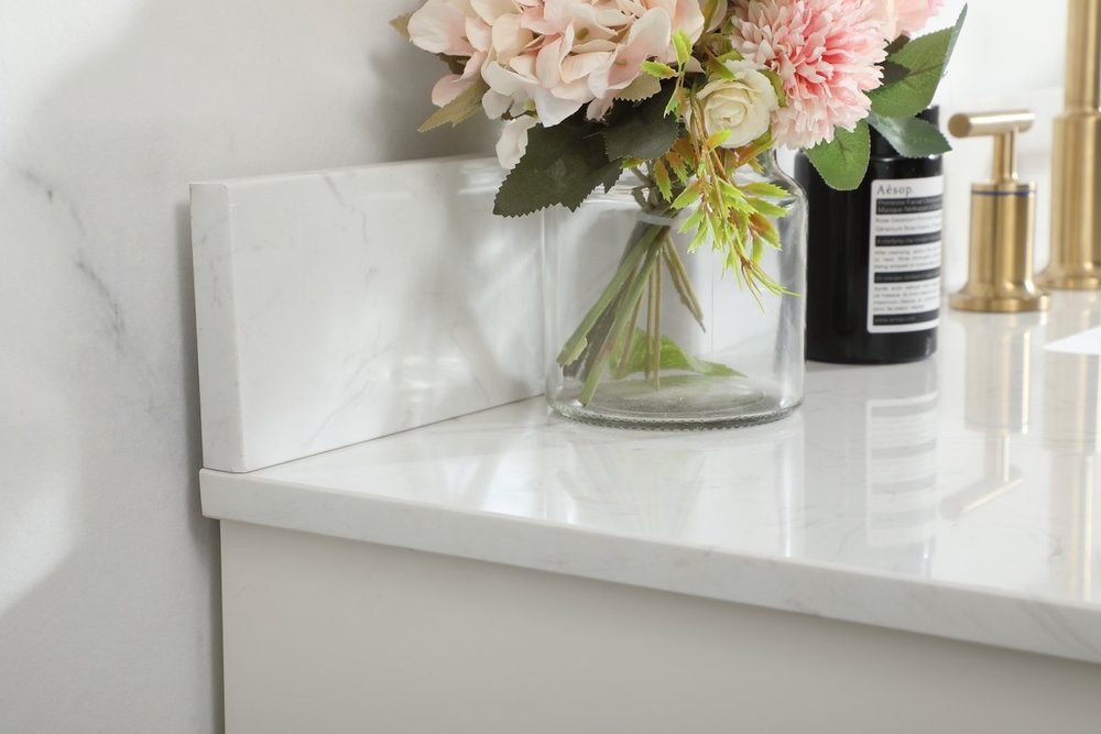 Comes with an undermount porcelain sink and a durable calacatta engineered marble stone top