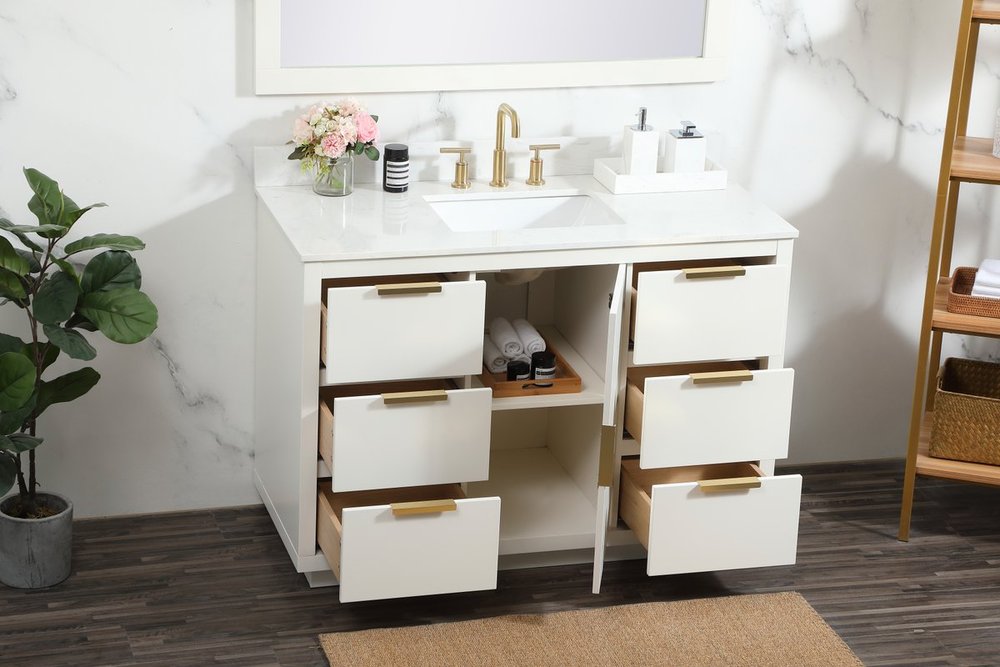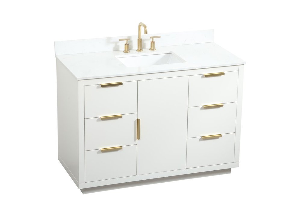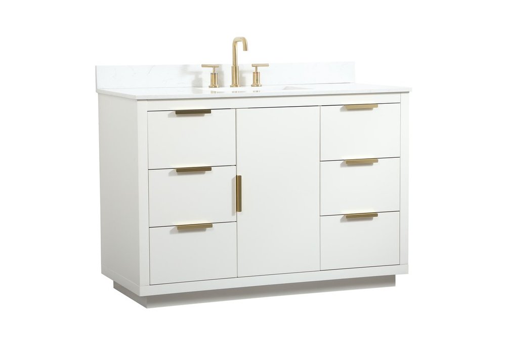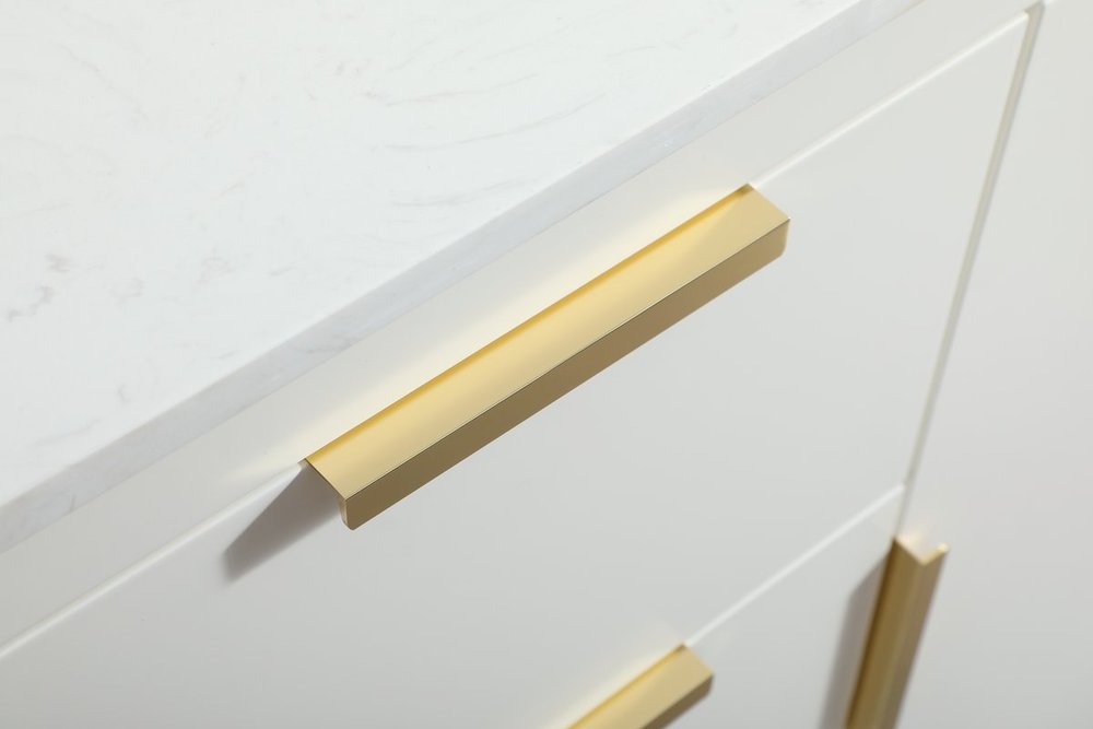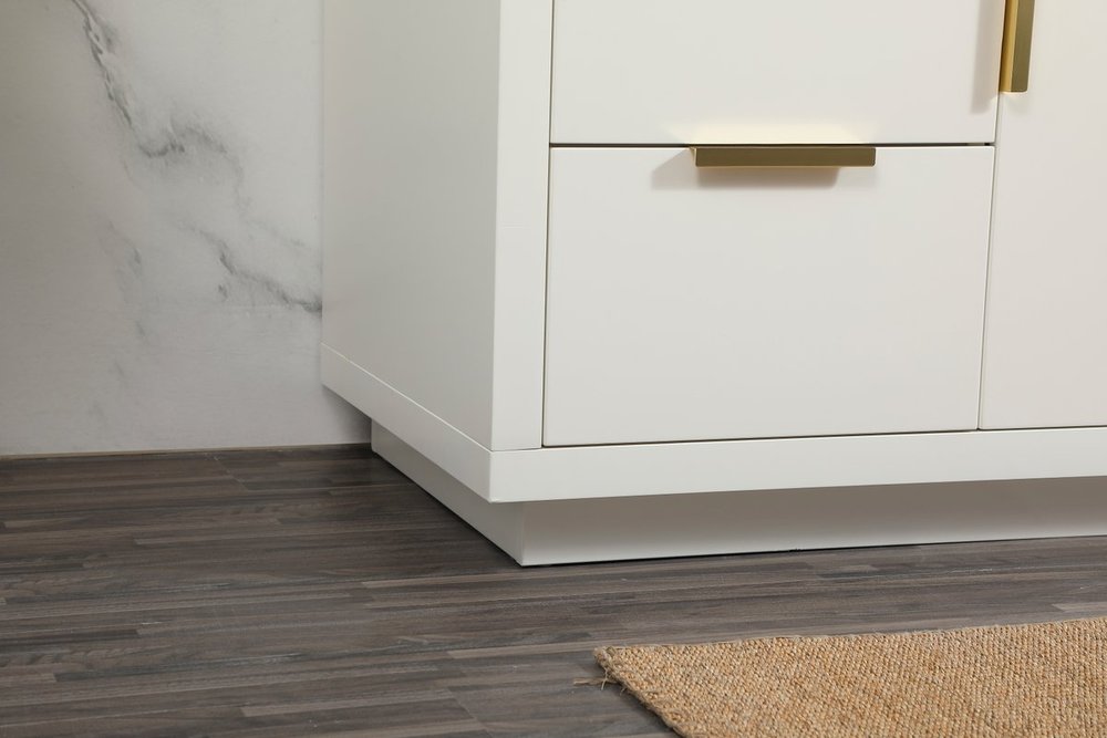 The Blake collection vanity cabinet will be a modern furniture statement piece in your bathroom. Our color combination creates a calming atmosphere in the room. The gold handles bring a vibrant touch to balance the vanity. With the simplistic clean lines, the cabinet catches eyes with its beautiful smooth surface. Open the cabinet doors to store what you desire and make use of the spacious area. Gently close the door and the soft closing glides will quietly closes the door. To top it off, the calacatta engineered marble adds a luxury and modern finish to the durable stonetop.