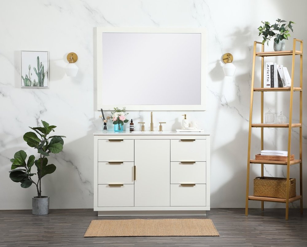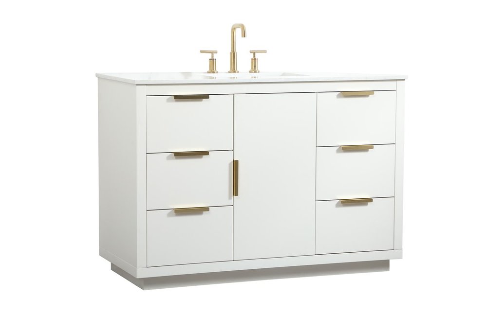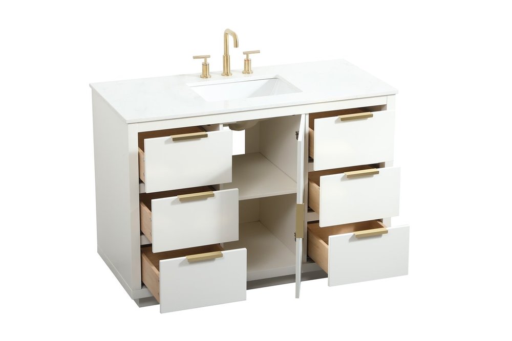 The Blake collection vanity cabinet will be a modern furniture statement piece in your bathroom. Our color combination creates a calming atmosphere in the room. The gold handles bring a vibrant touch to balance the vanity. With the simplistic clean lines, the cabinet catches eyes with its beautiful smooth surface. Open the cabinet doors to store what you desire and make use of the spacious area. Gently close the door and the soft closing glides will quietly closes the door. To top it off, the calacatta engineered marble adds a luxury and modern finish to the durable stonetop.