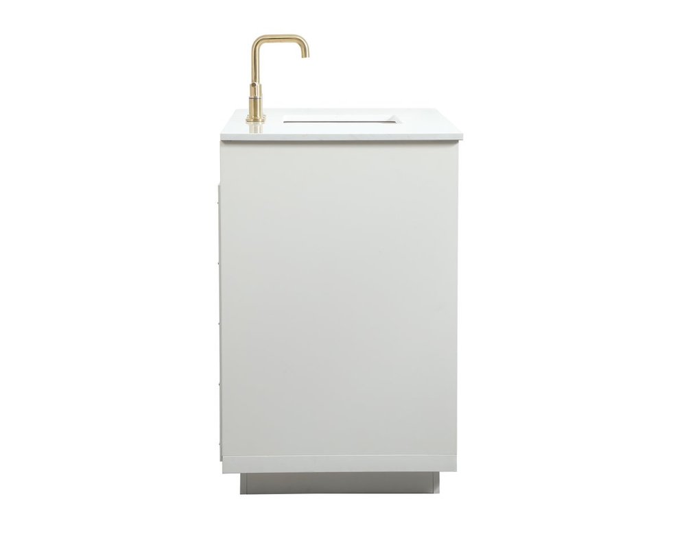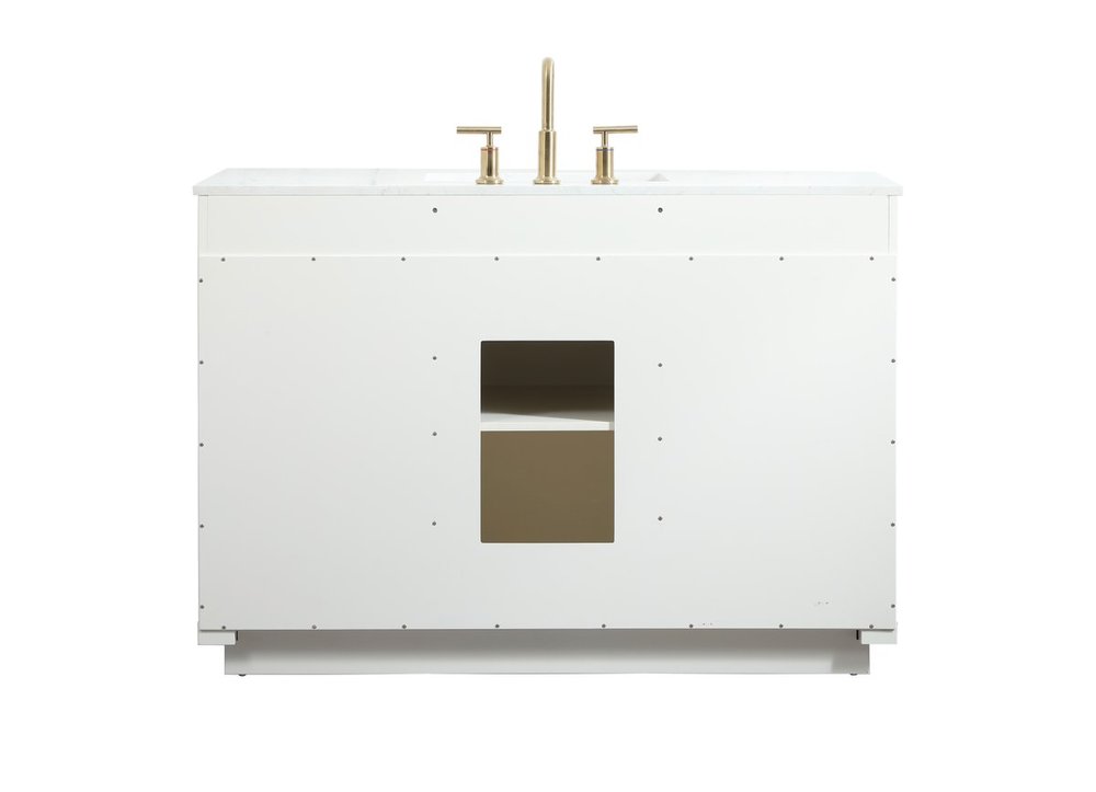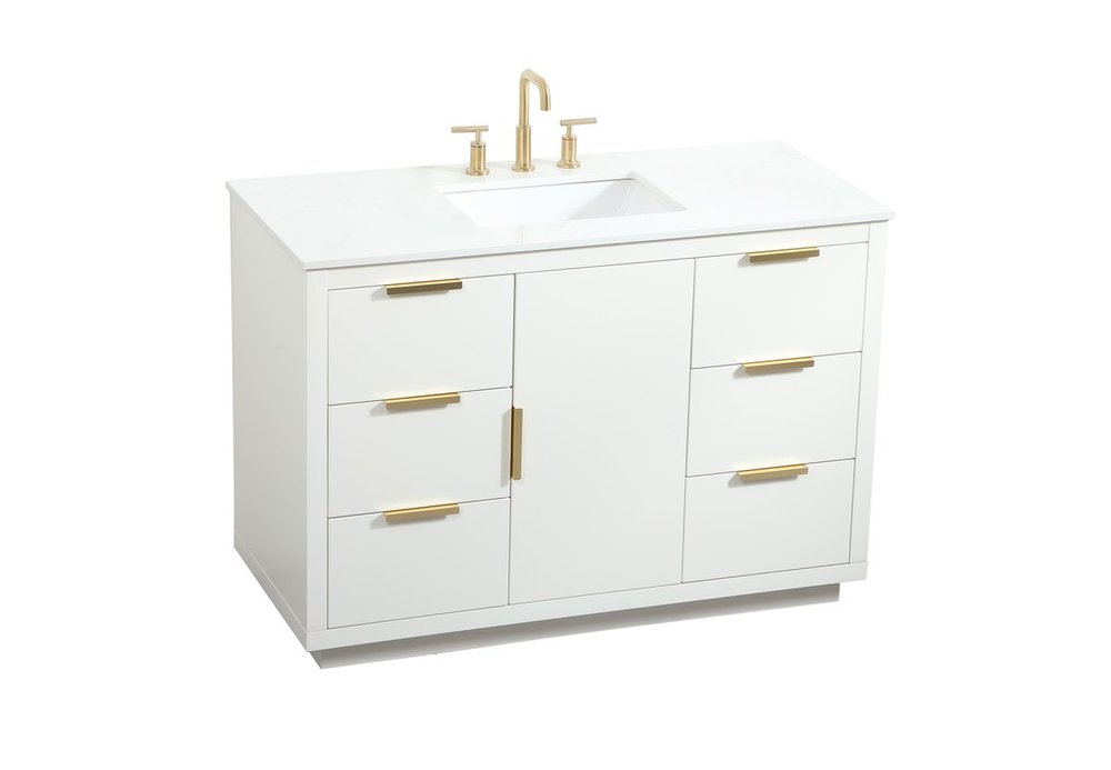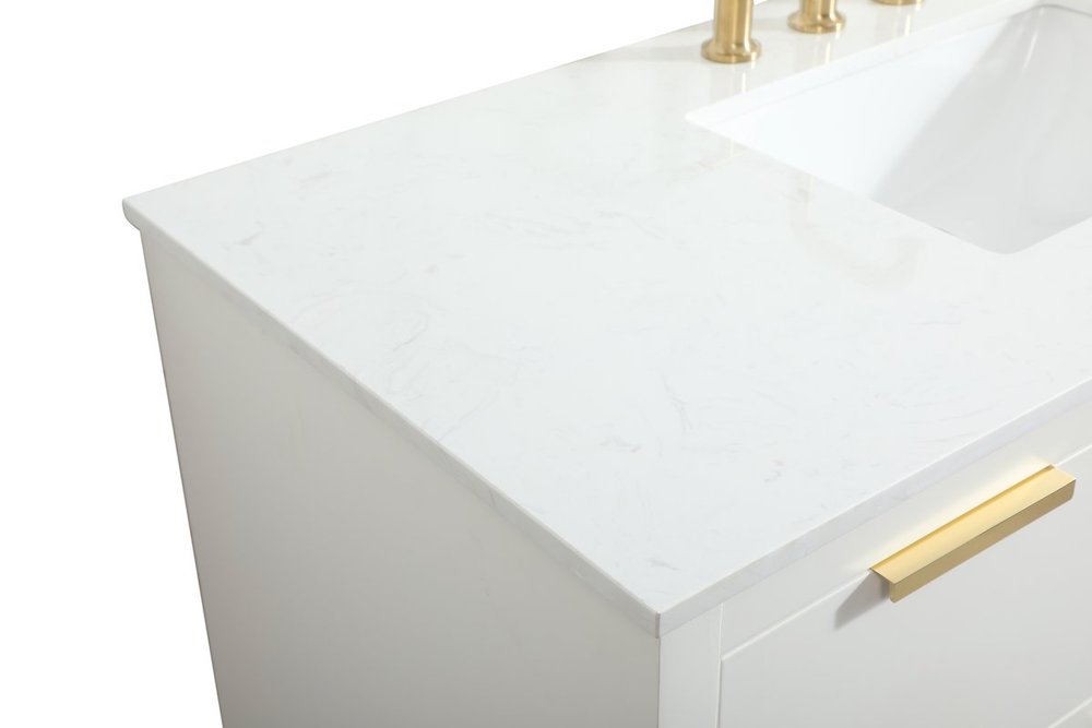 Comes with an undermount porcelain sink and a durable calacatta engineered marble stone top