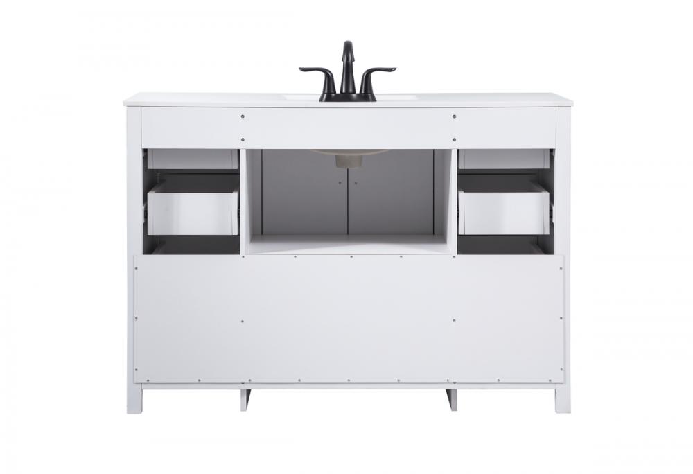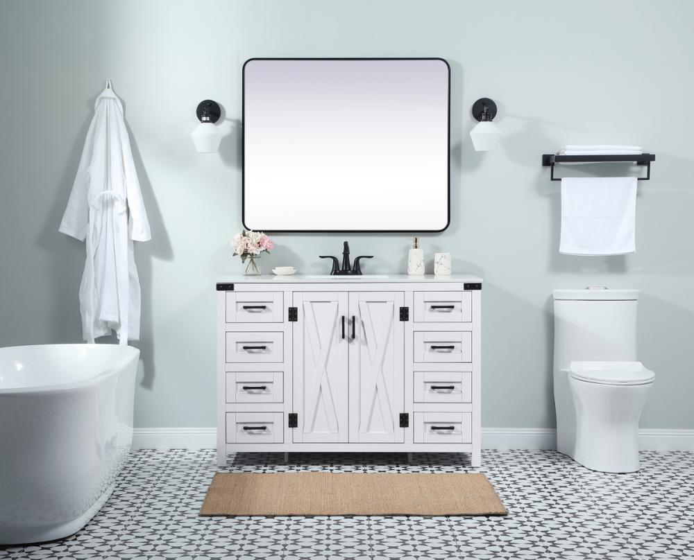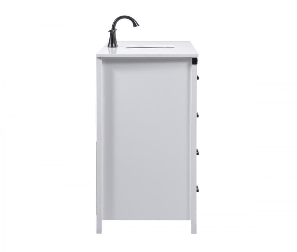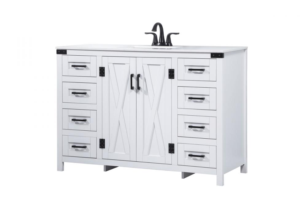 Reminiscent of barn doors, the two door cabinet and eight drawers adds both stylistic charm and function with its plethora of storage options for all your bathroom essentials. Whether for your bathroom or the guests', everyone will marvel at its classic look for traditional and farmhouse aesthetics. A slab of engineered marble rounds out the piece up top, as well as the porcelain under mount sink and predrilled faucet holes. This vanity arrives fully assembled.