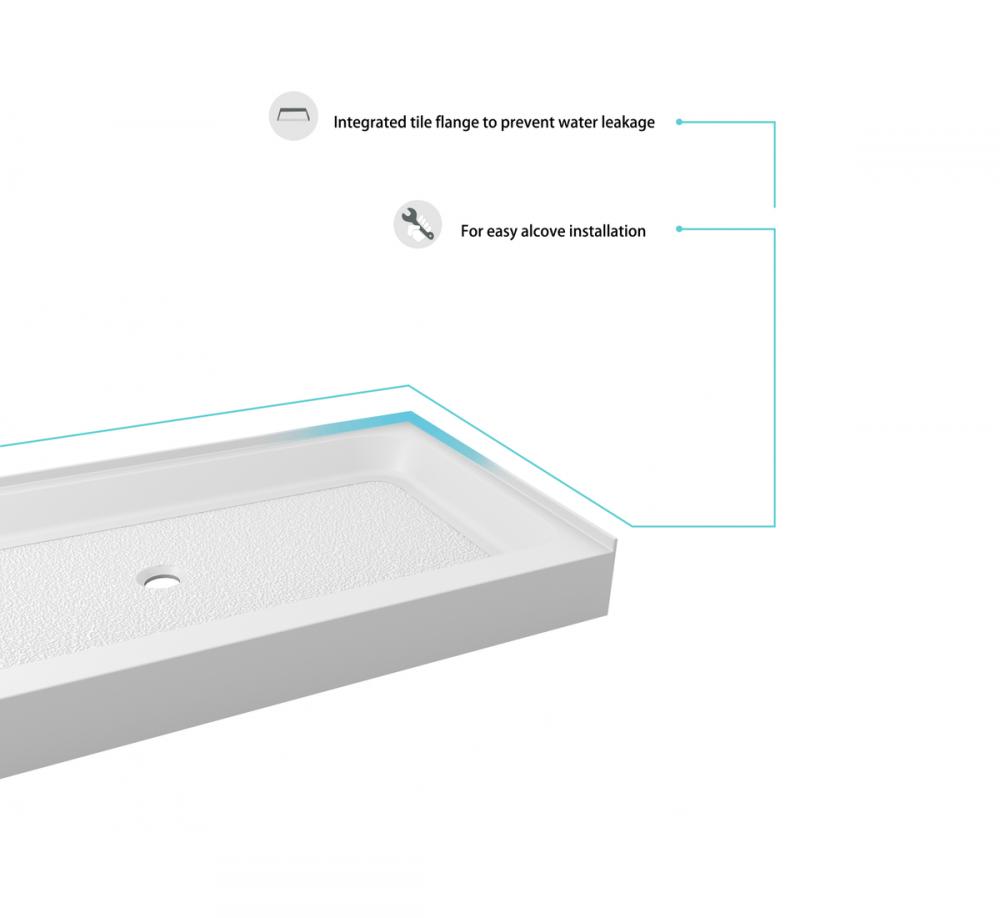 Upgrade your bathroom with our acrylic single threshold alcove shower base in glossy white and enjoy the perfect blend of style, safety, and quality for years to come! This rectangular masterpiece not only adds a touch of contemporary luxury to your space but also ensures top-notch safety and durability. Available in multiple sizes and three drain configurations (left, right, and center).