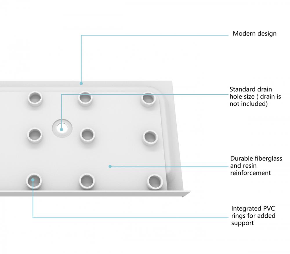 With a floor slope of 1%-2.5%, our shower base ensures efficient water drainage, preventing puddles and maintaining a clean and dry shower environment.