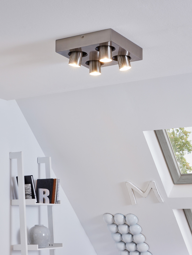 4 LT Square Ceiling Track Light w/ Matte Nickel Finish & Adjustable Lamp Heads