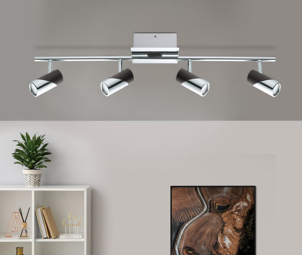 4 LT LED Track Light w/ Chrome Finish & Chrome & Black Adjustable Lamp Heads