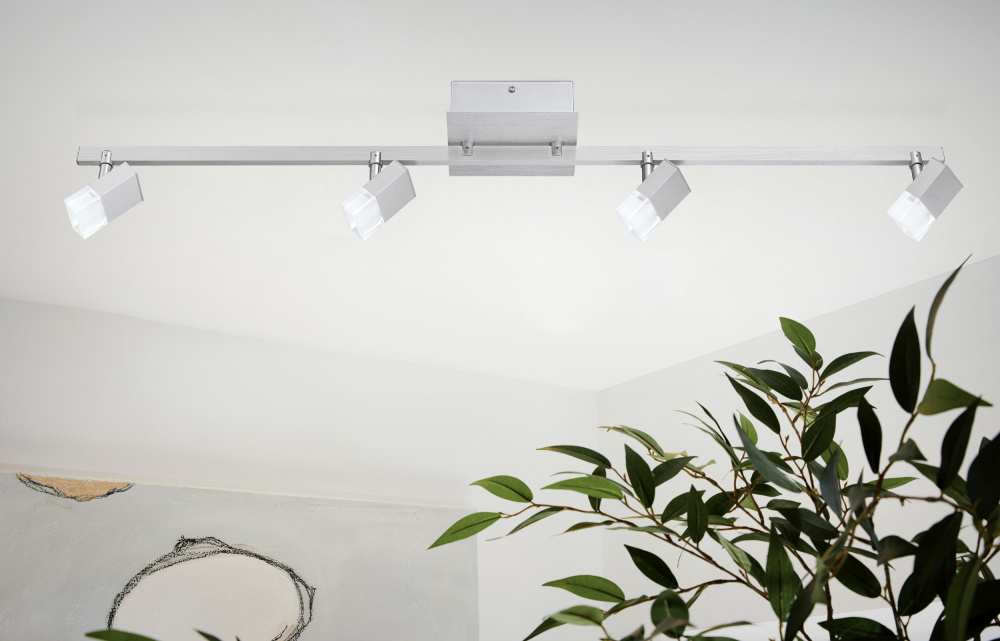 4 LT LED Fixed Track Light w/ Brushed Aluminum Finish & Satin & Clear Acrylic Shades