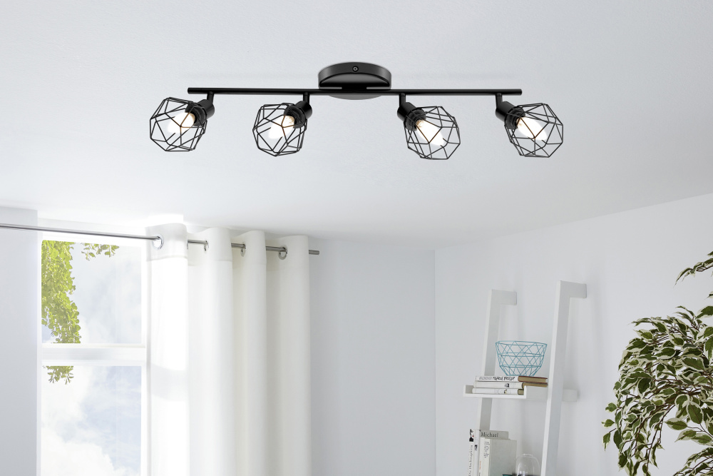 4 LT Fixed Track Light w/ Matte Black Finish & Matte Black Geometric Adjustable Shades